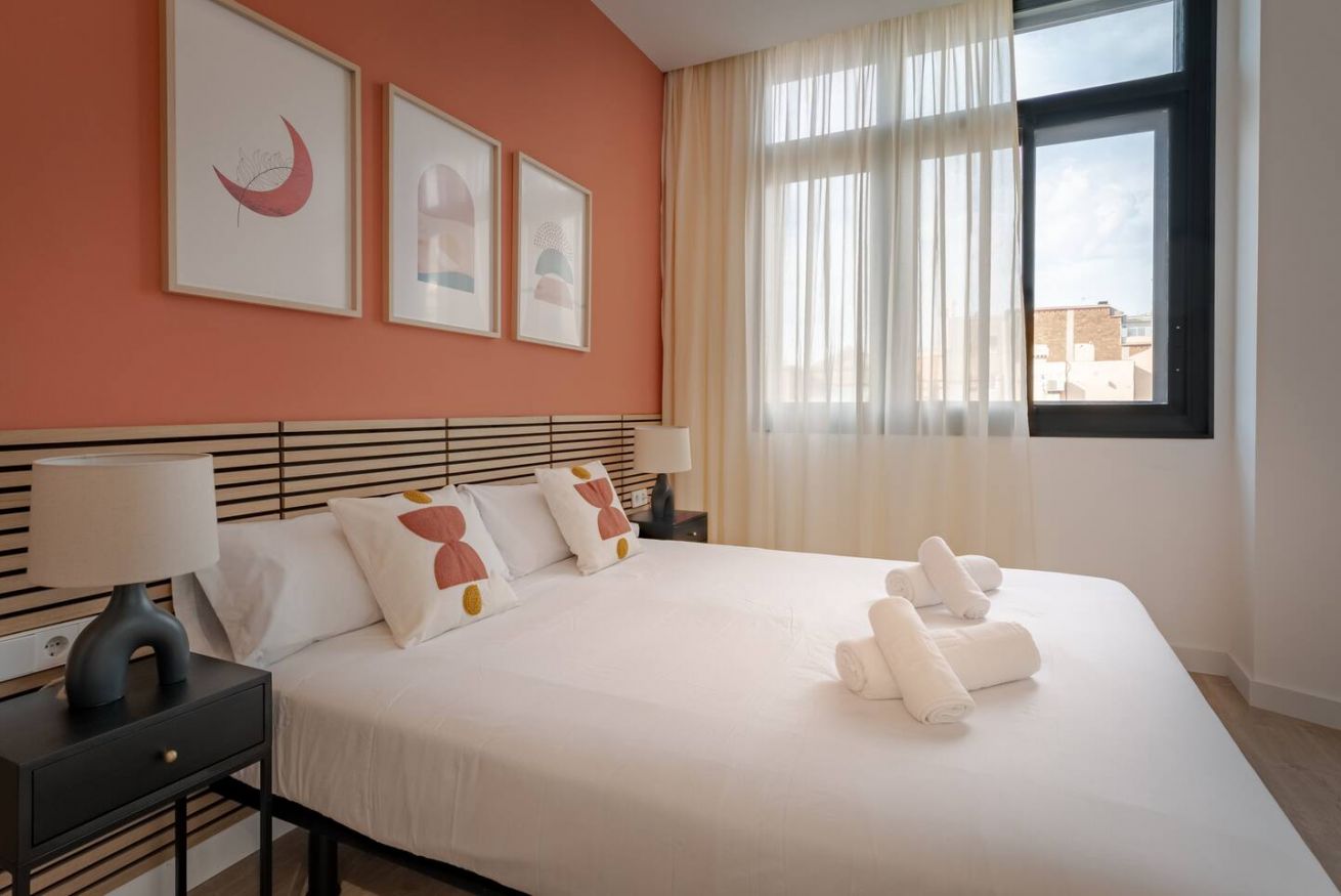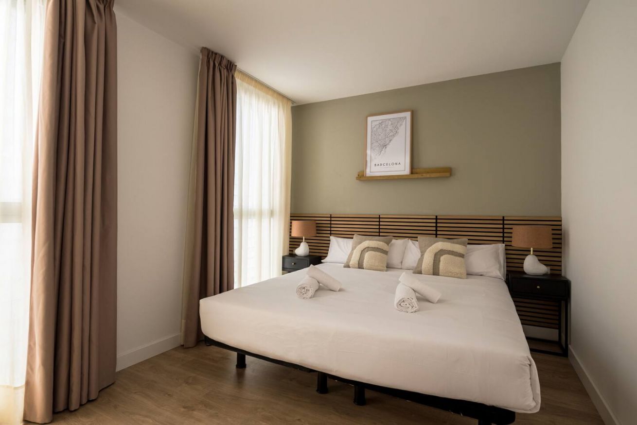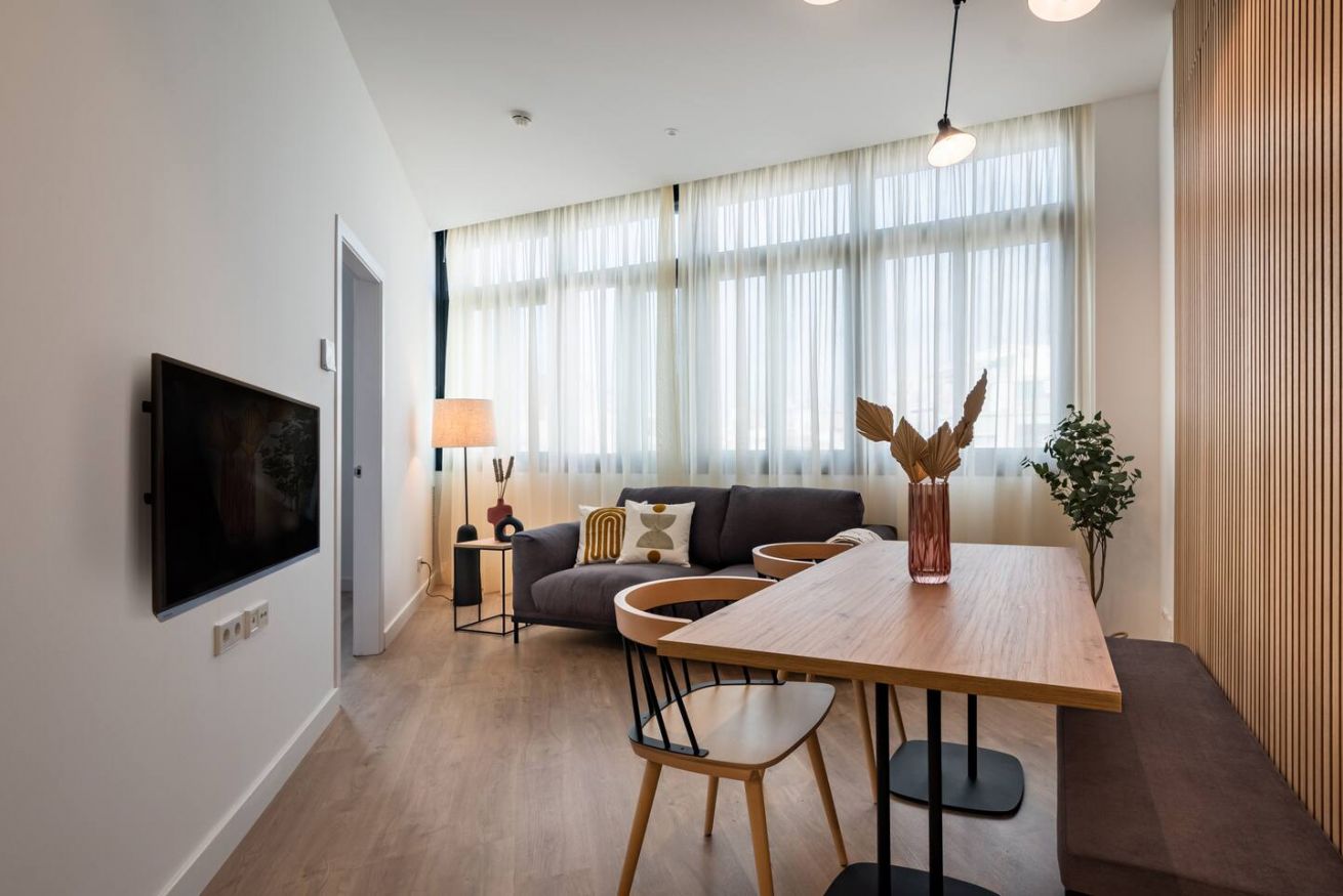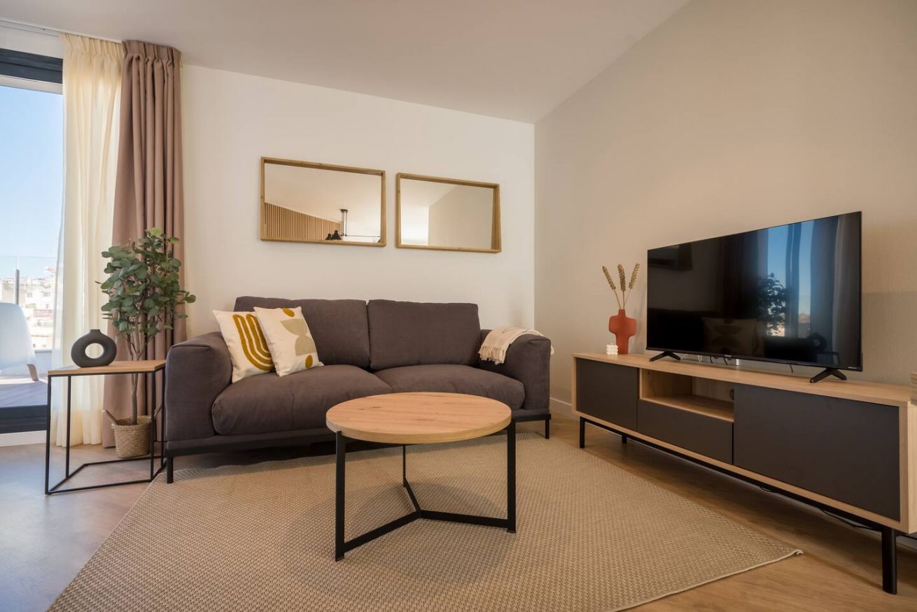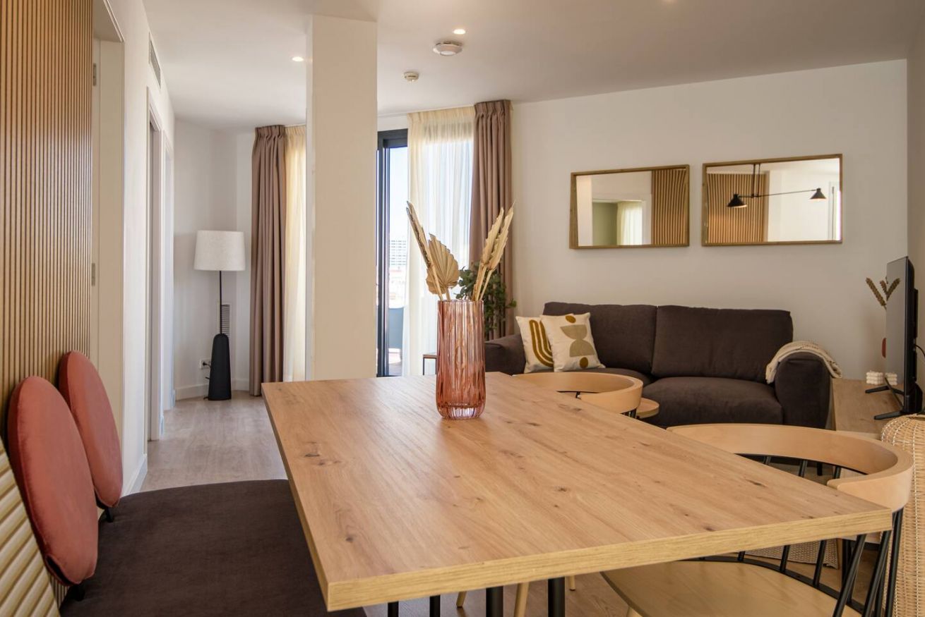 This 80 m² apartment with two bedrooms (one double + two singles) and two bathrooms, living room, semi-open fully equipped kitchen. Stay active and healthy with the convenience of an on-site gym. Ideal for families, couples, or professionals. Max 4 guests.