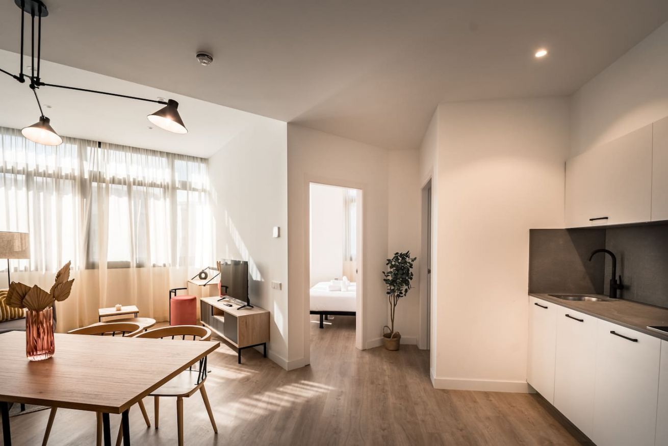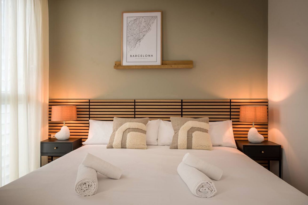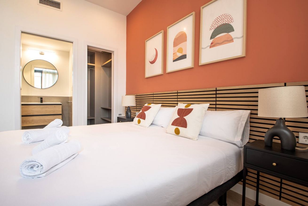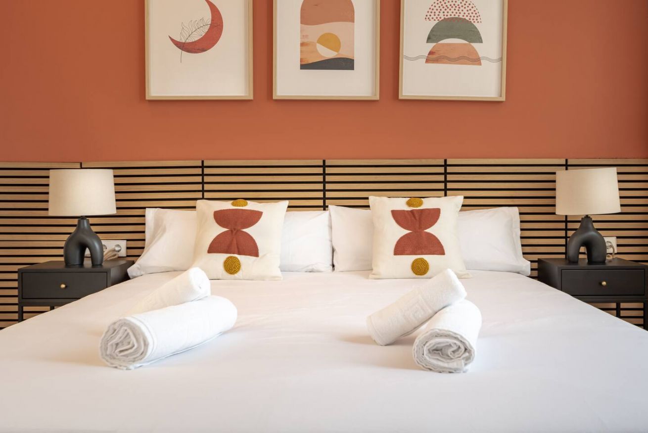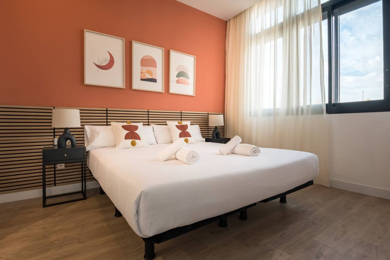 This 80 m² apartment with two bedrooms (one double + two singles) and two bathrooms, living room, semi-open fully equipped kitchen. Stay active and healthy with the convenience of an on-site gym. Ideal for families, couples, or professionals. Max 4 guests.