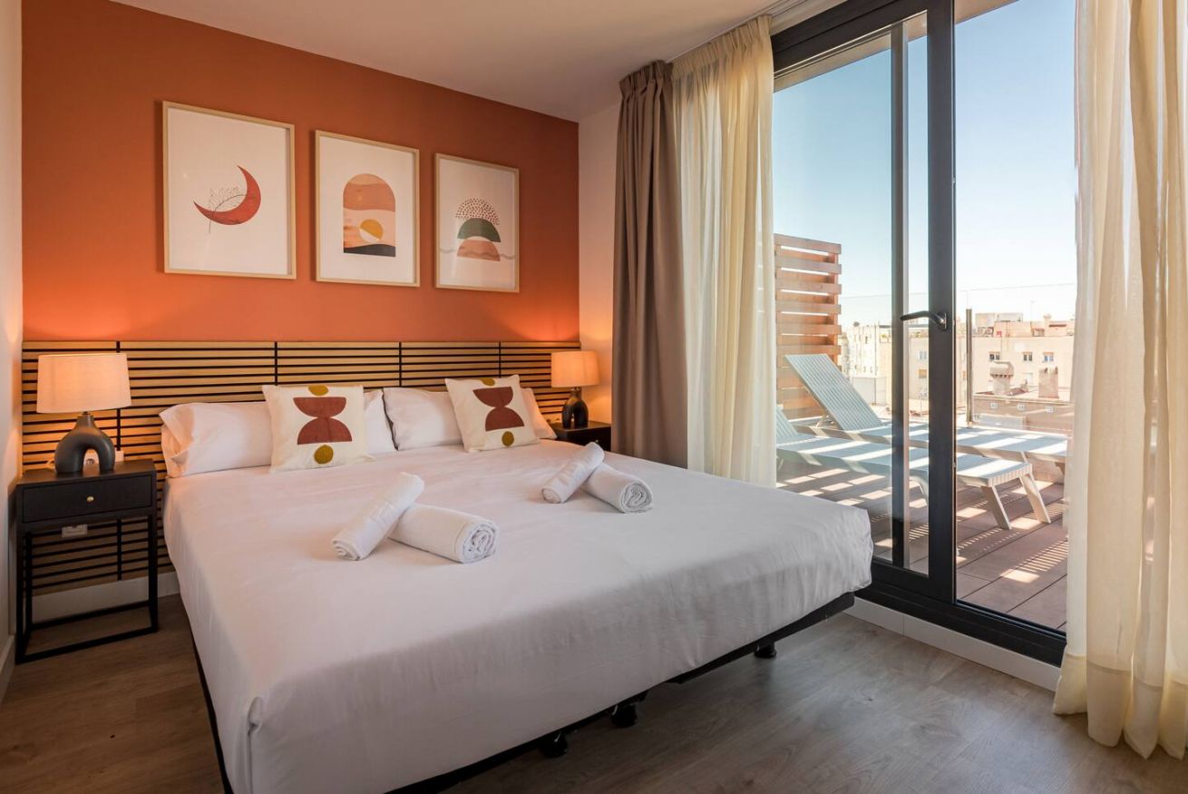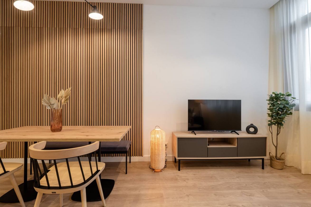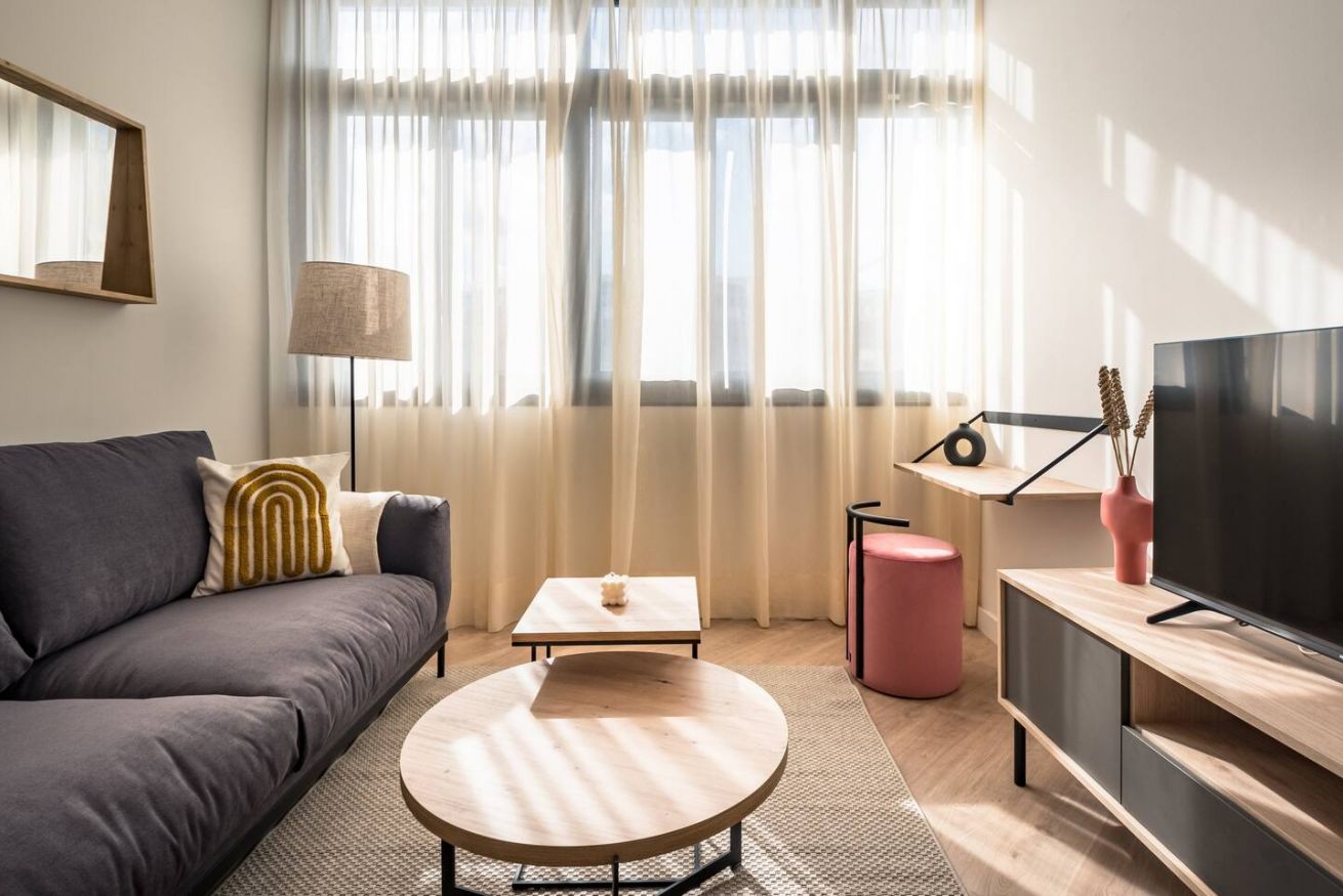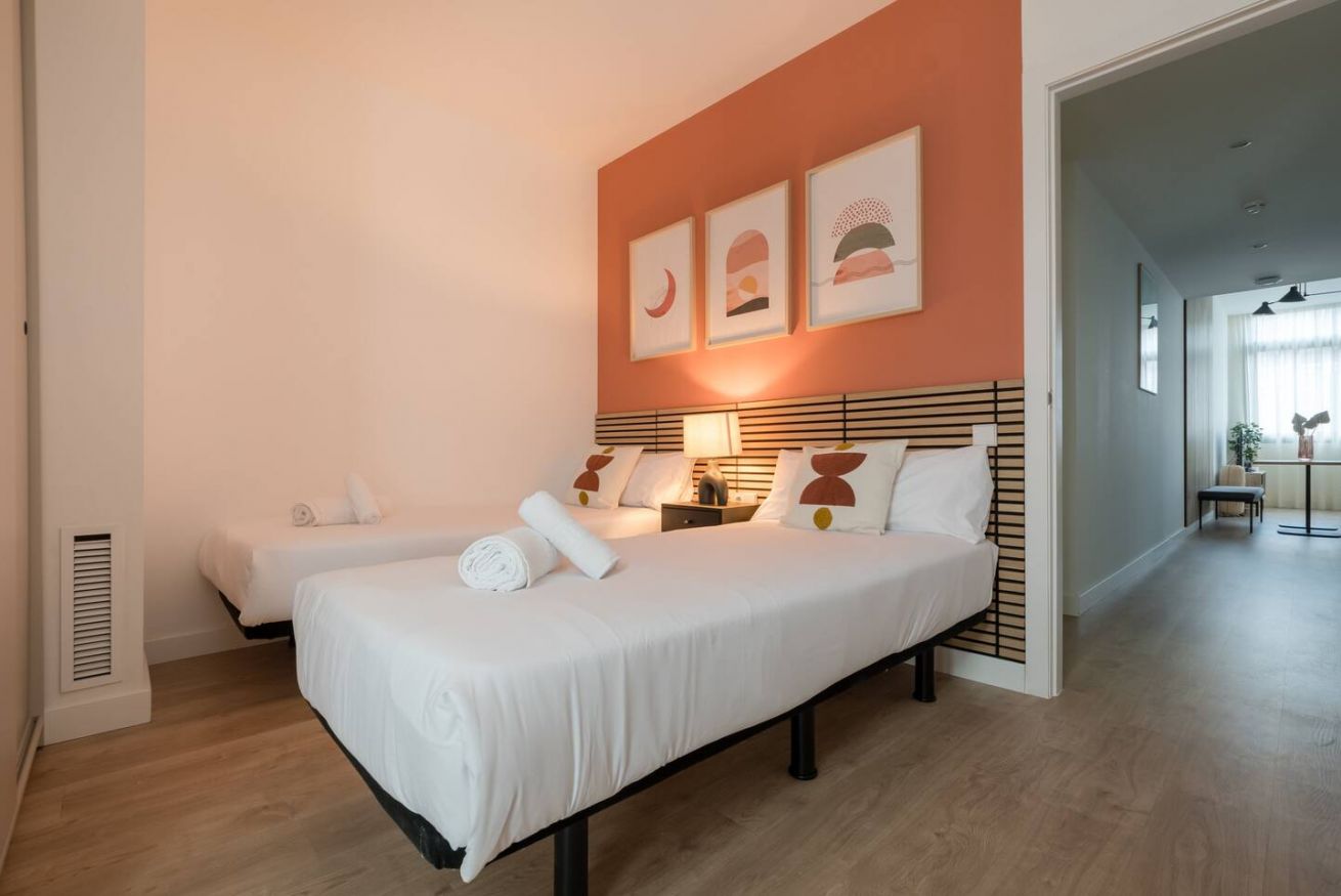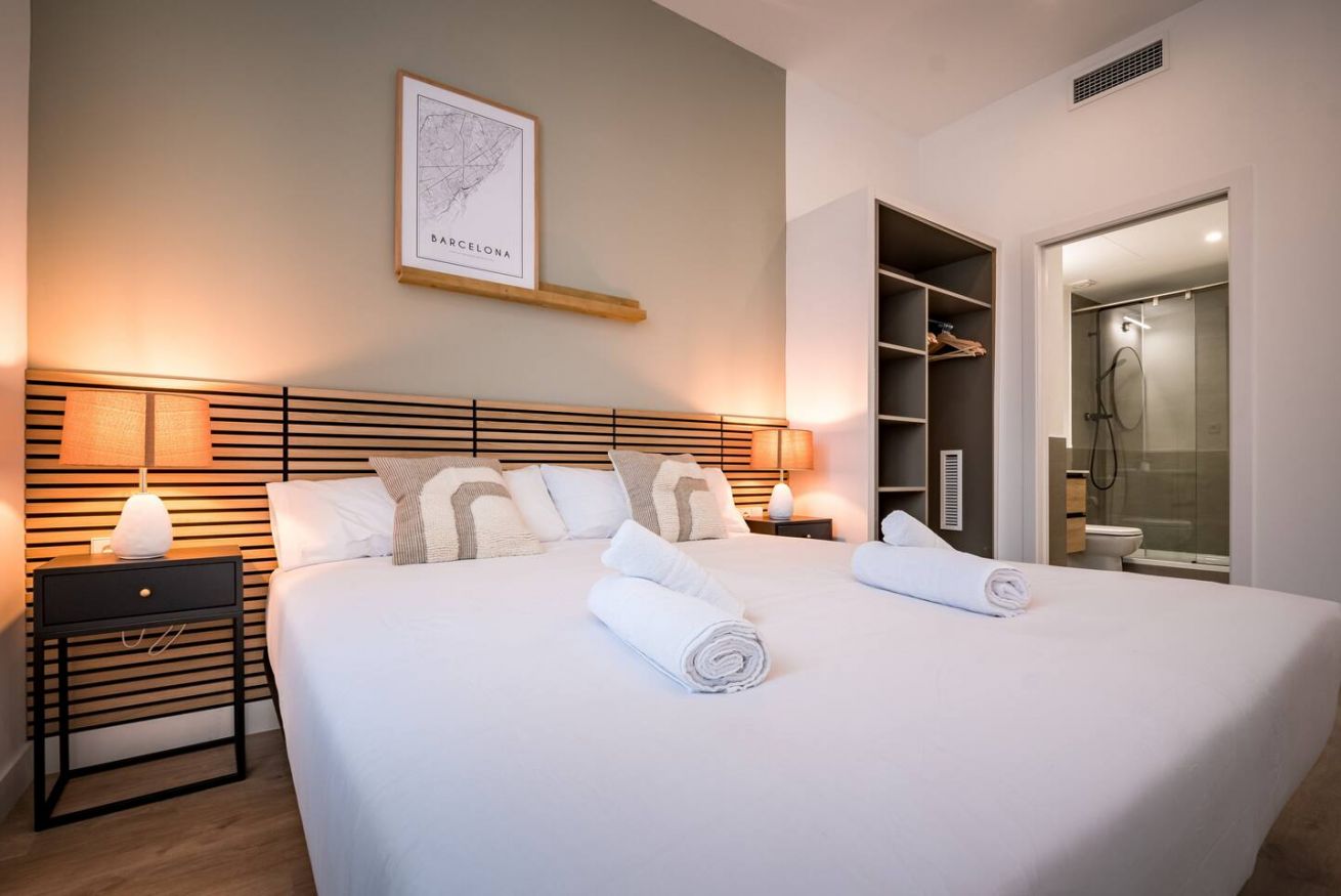 This 80 m² apartment with two bedrooms (one double + two singles) and two bathrooms, living room, semi-open fully equipped kitchen. Stay active and healthy with the convenience of an on-site gym. Ideal for families, couples, or professionals. Max 4 guests.