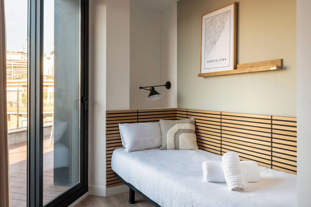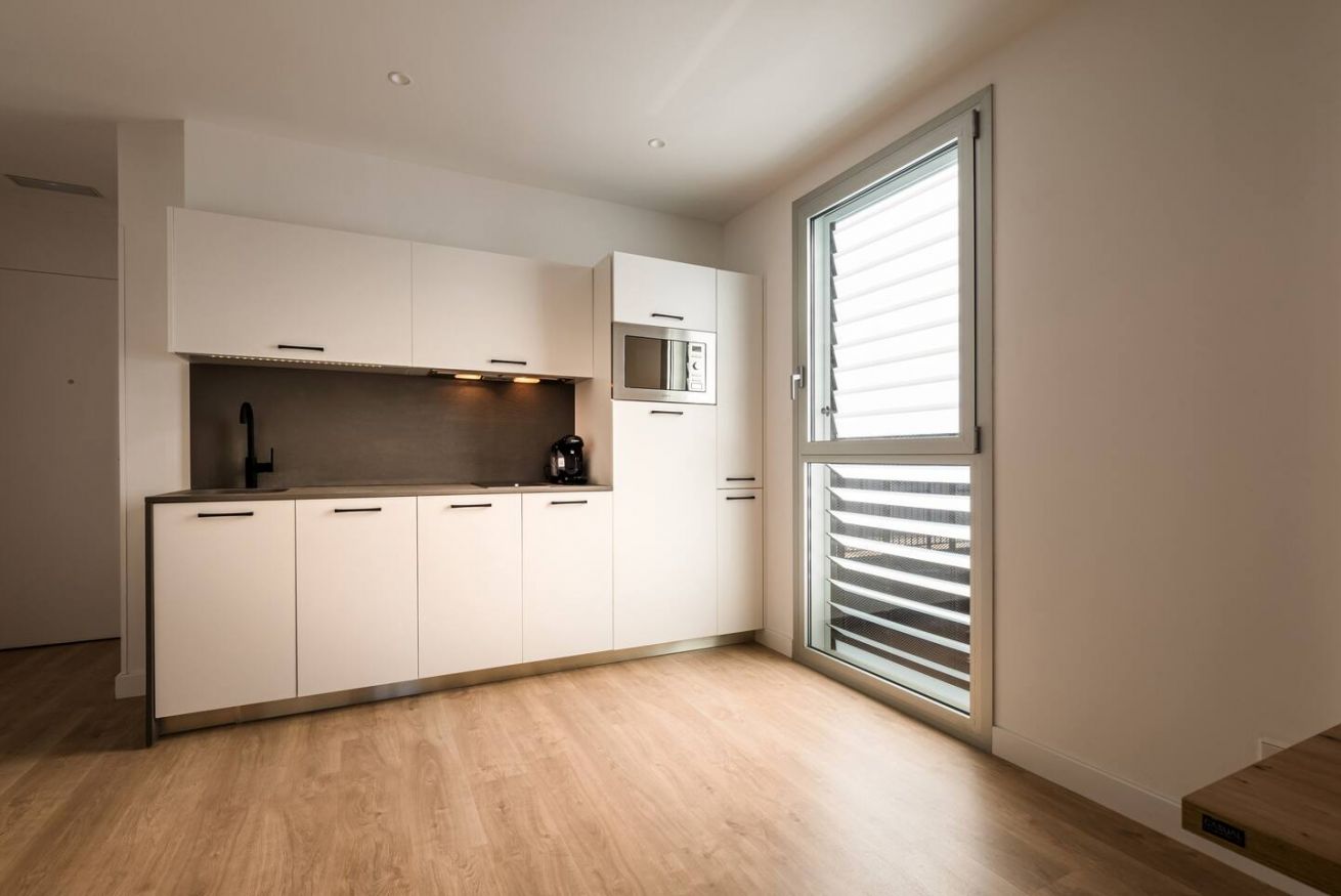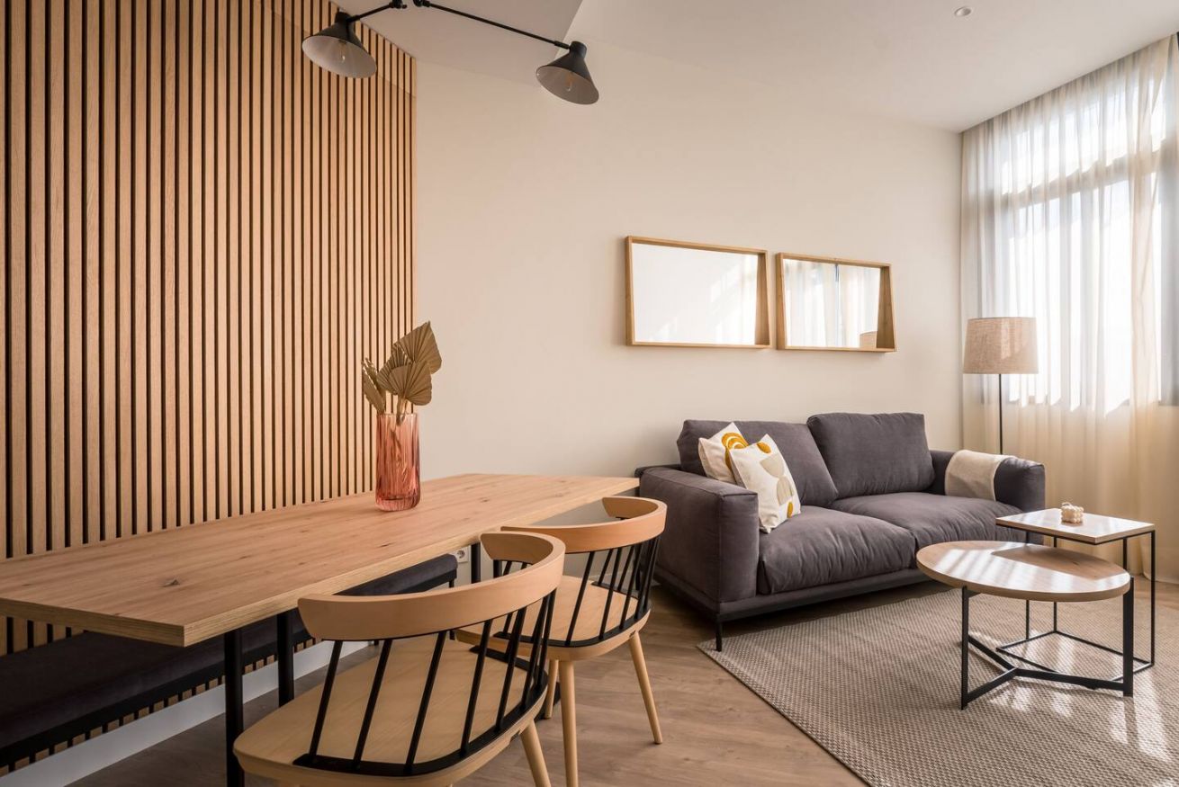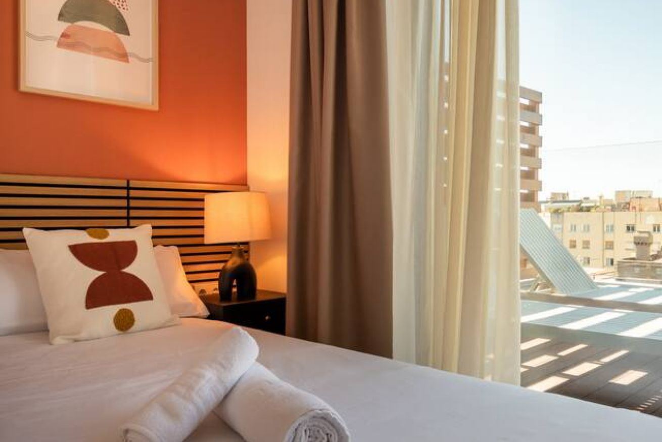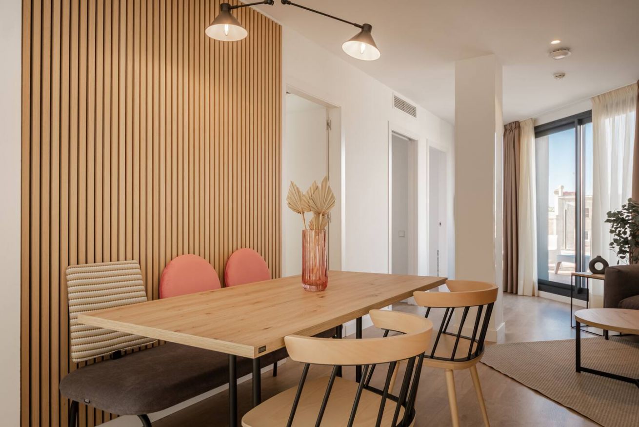 This 80 m² apartment with two bedrooms (one double + two singles) and two bathrooms, living room, semi-open fully equipped kitchen. Stay active and healthy with the convenience of an on-site gym. Ideal for families, couples, or professionals. Max 4 guests.