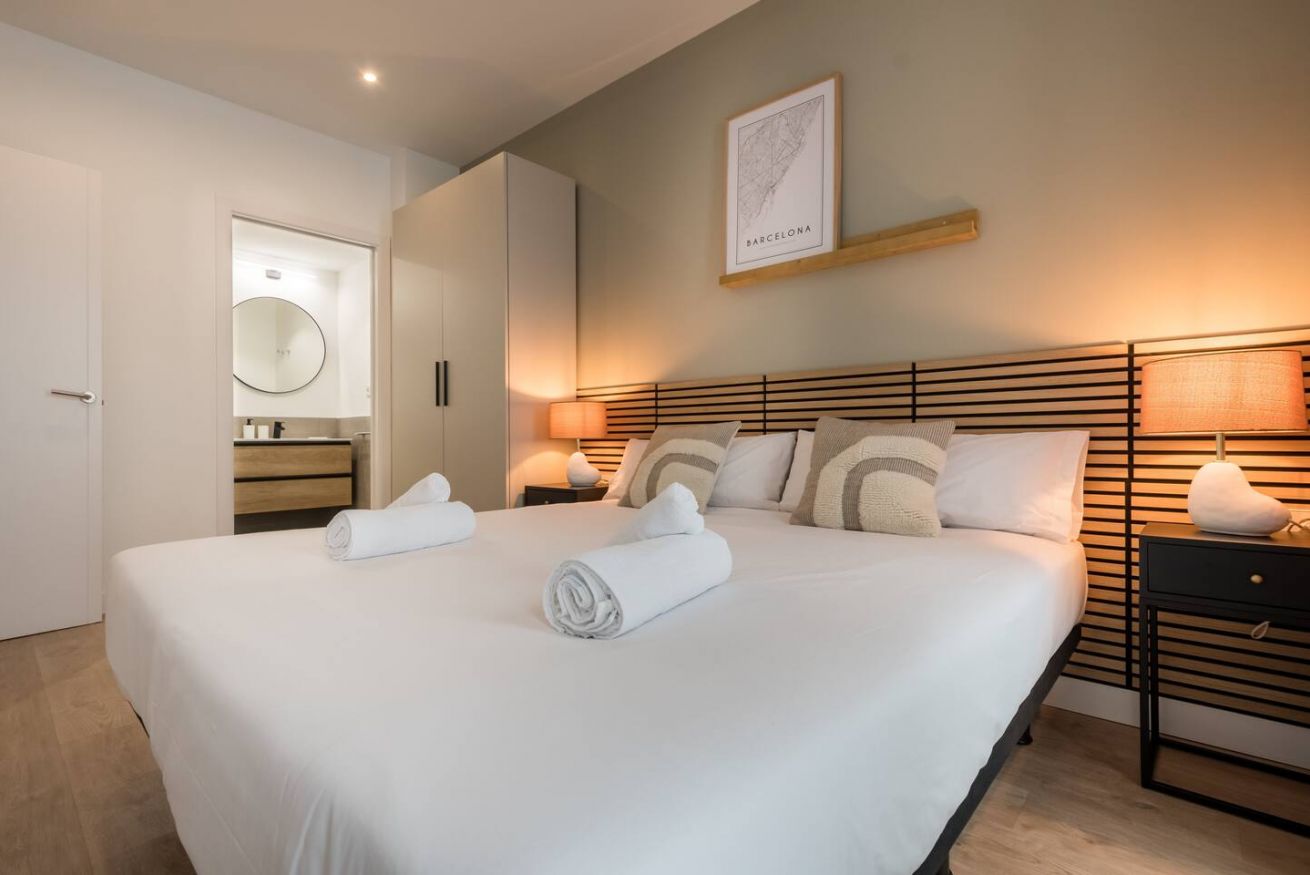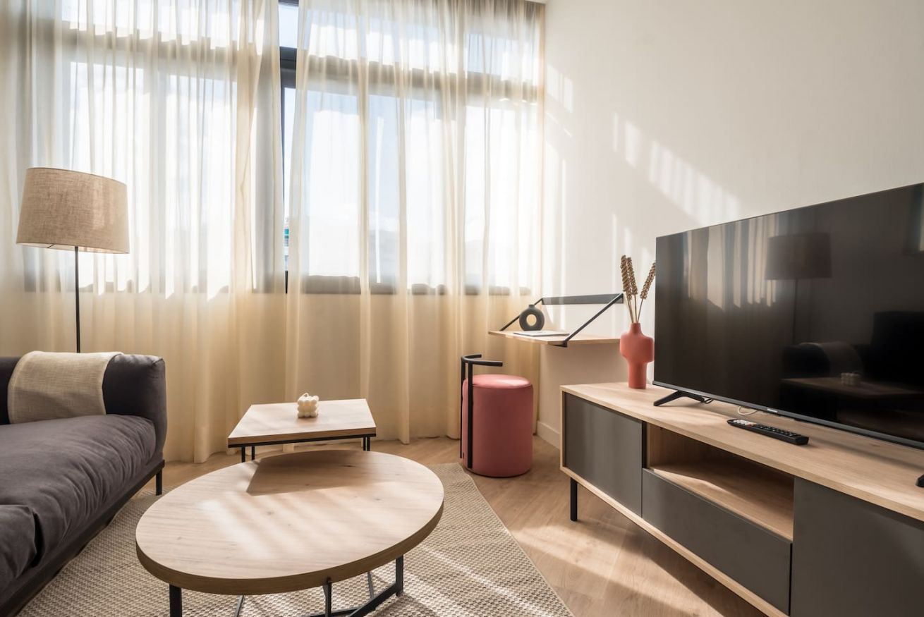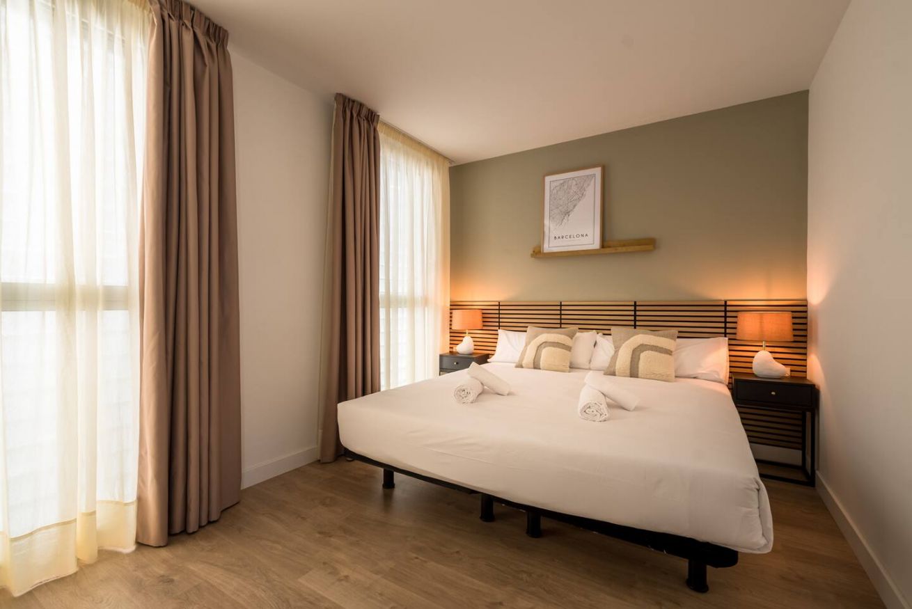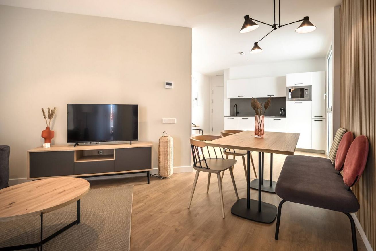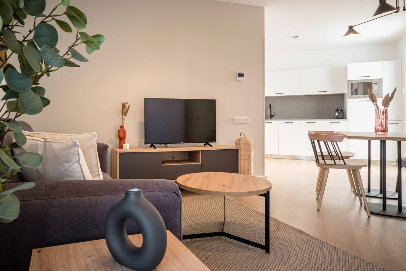This 80 m² apartment with two double bedrooms and two bathrooms, living room, semi-open fully equipped kitchen. Stay active and healthy with the convenience of an on-site gym. Ideal for families, couples, or professionals. Max 4 guests.