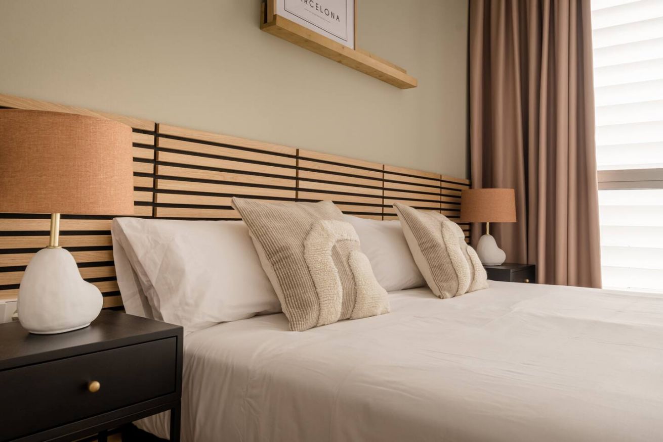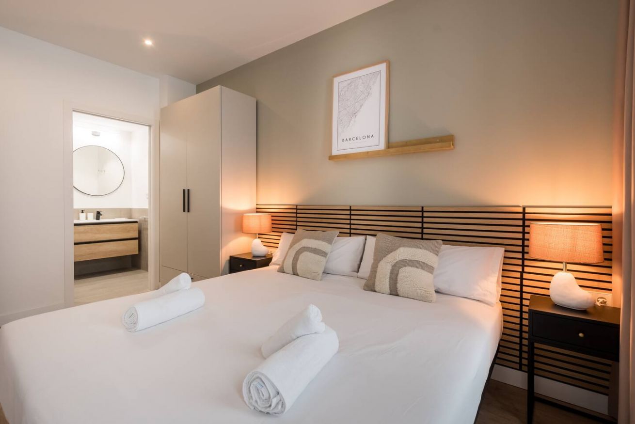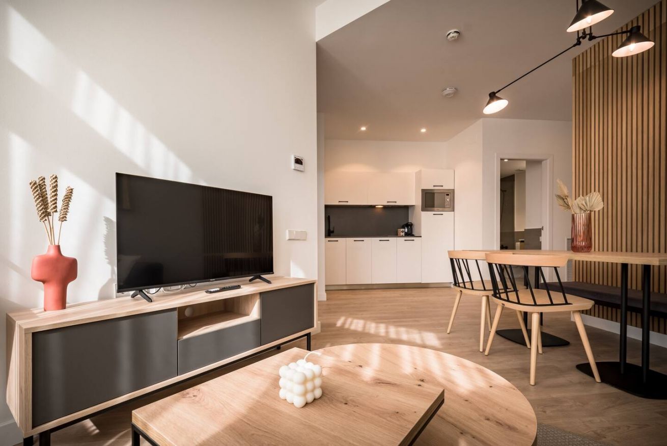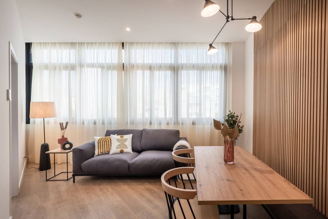 This 80 m² apartment with two double bedrooms and two bathrooms, living room, semi-open fully equipped kitchen. Stay active and healthy with the convenience of an on-site gym. Ideal for families, couples, or professionals. Max 4 guests.