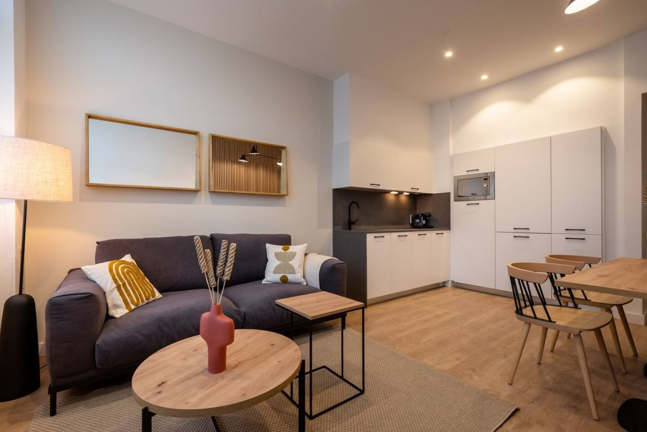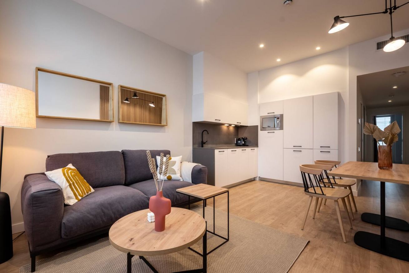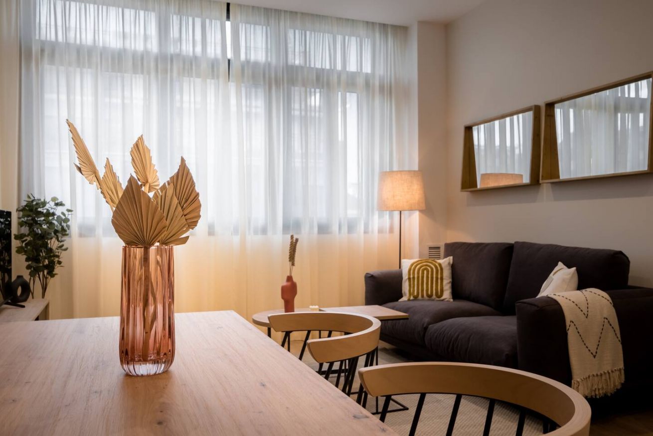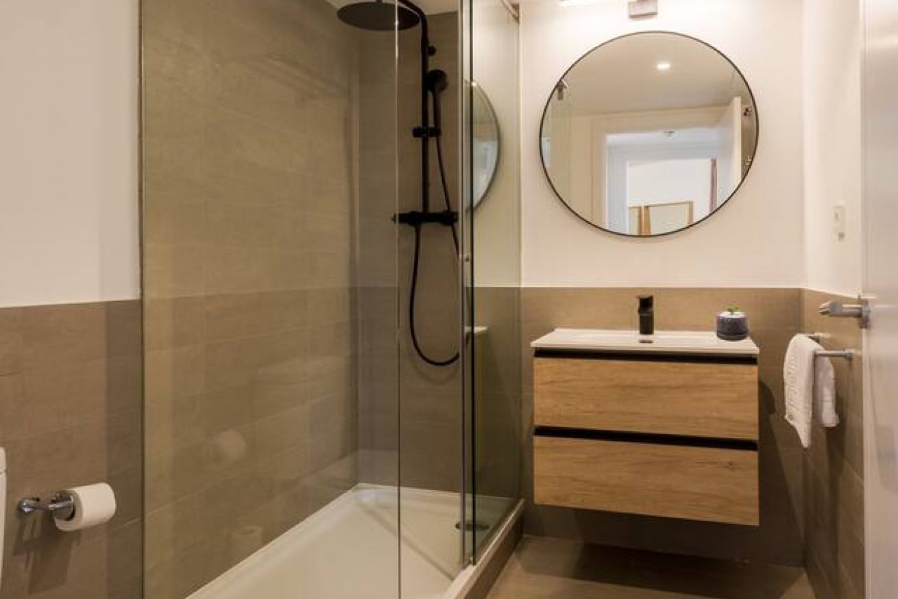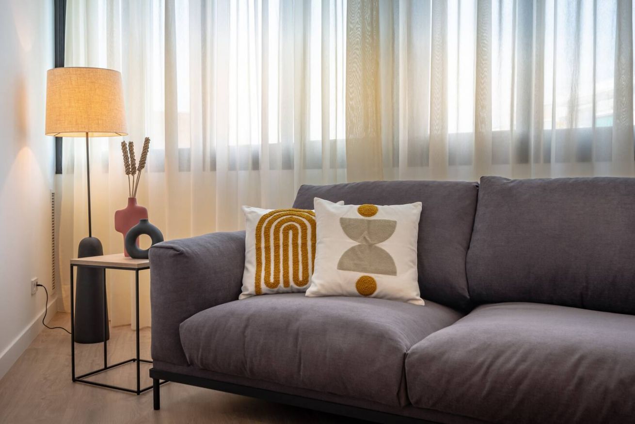 This 80 m² apartment with two double bedrooms and two bathrooms, living room, semi-open fully equipped kitchen. Stay active and healthy with the convenience of an on-site gym. Ideal for families, couples, or professionals. Max 4 guests.