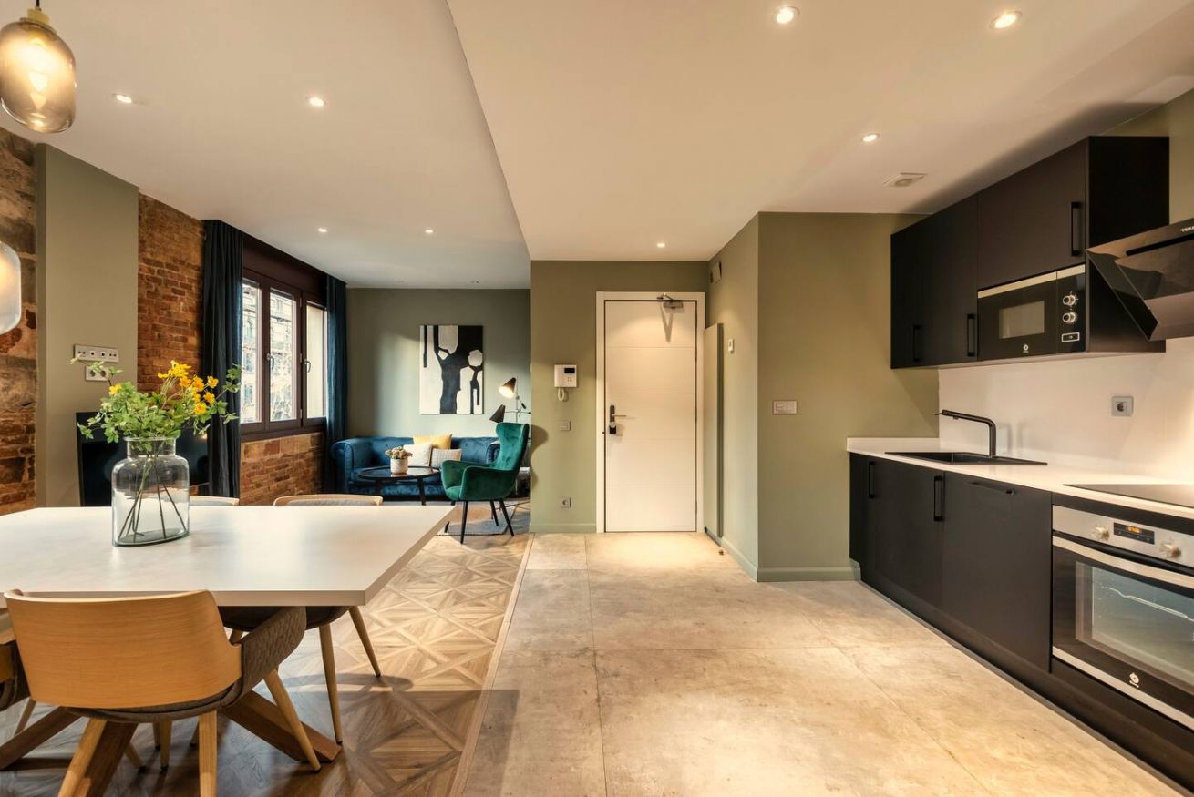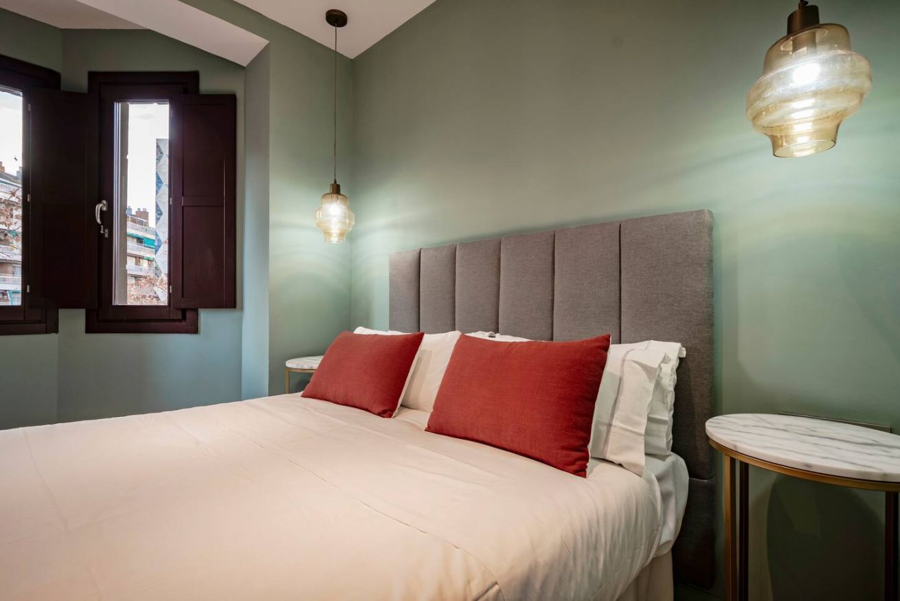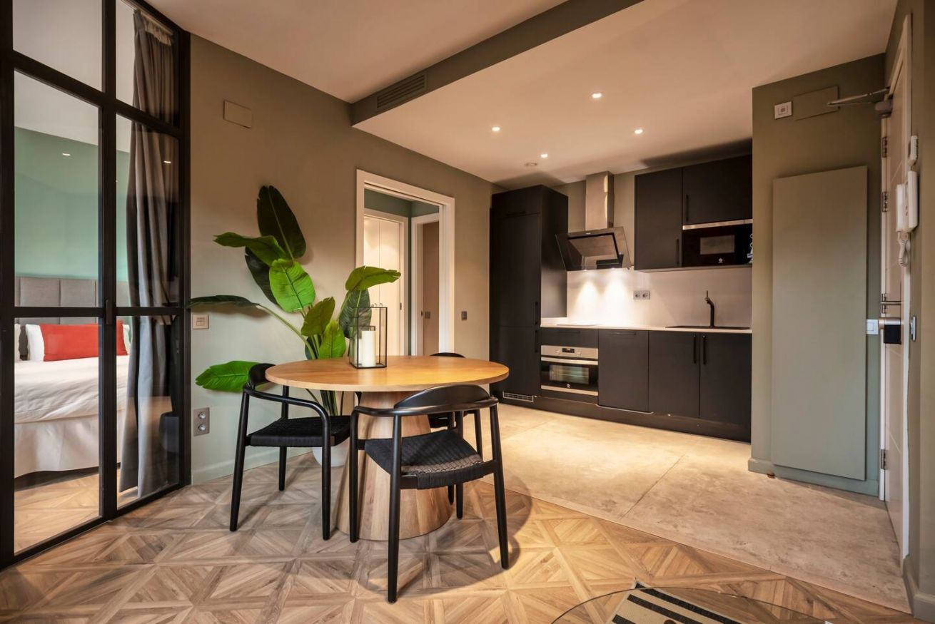 Este apartamento de 60 m² tiene un dormitorio con cama doble, un baño, salón, cocina semiabierta totalmente equipada, y es ideal para parejas y profesionales. Aprovecha al máximo la azotea comunitaria con zona chill-out y espacio de coworking. Máx. 2 huéspedes.