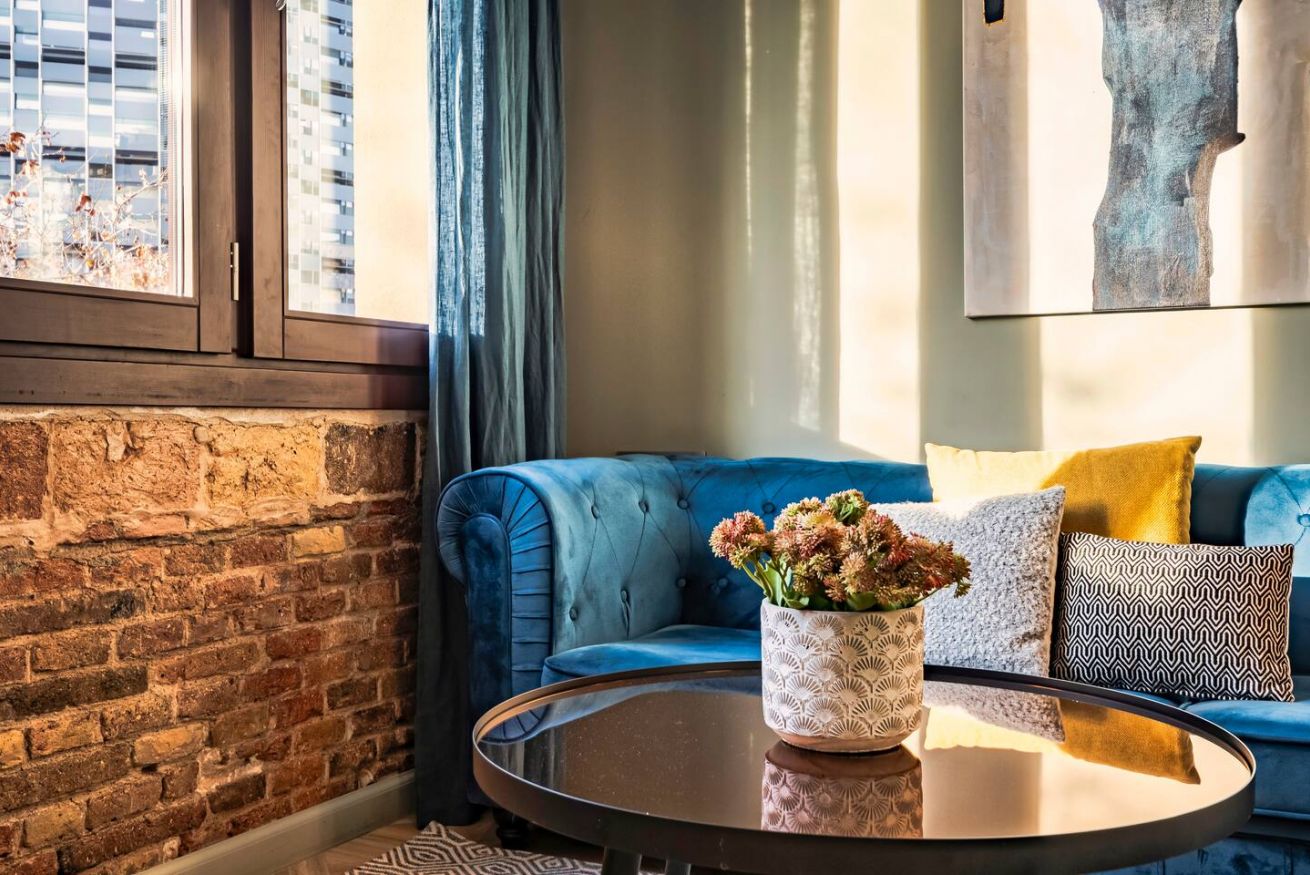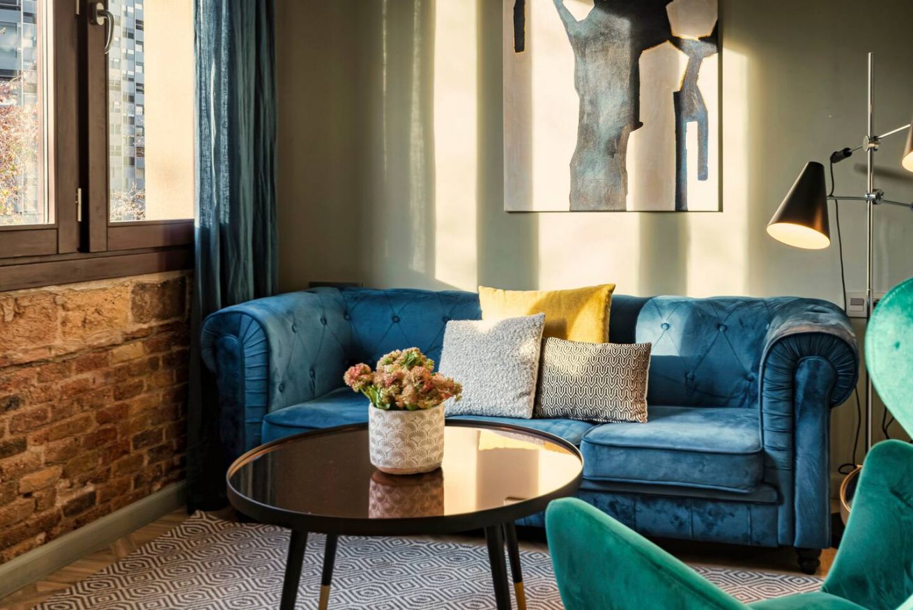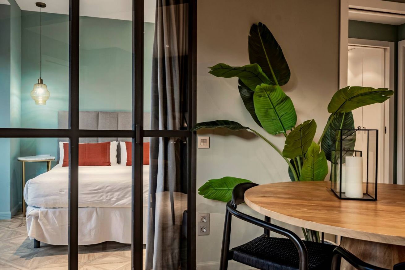 Este apartamento de 60 m² tiene un dormitorio con cama doble, un baño, salón, cocina semiabierta totalmente equipada, y es ideal para parejas y profesionales. Aprovecha al máximo la azotea comunitaria con zona chill-out y espacio de coworking. Máx. 2 huéspedes.