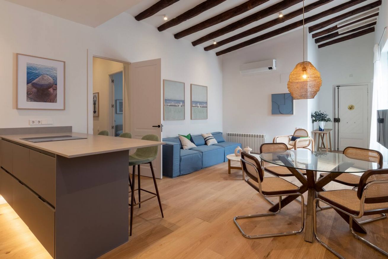 Este apartamento de 75 m² tiene dos dormitorios con camas dobles, un baño, salón y cocina semiabierta totalmente equipada. Es ideal para parejas y profesionales. Máximo 4 huéspedes.