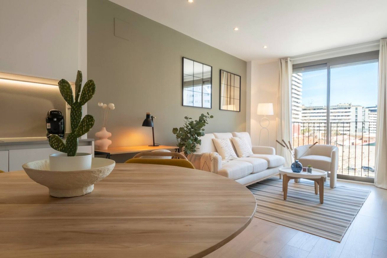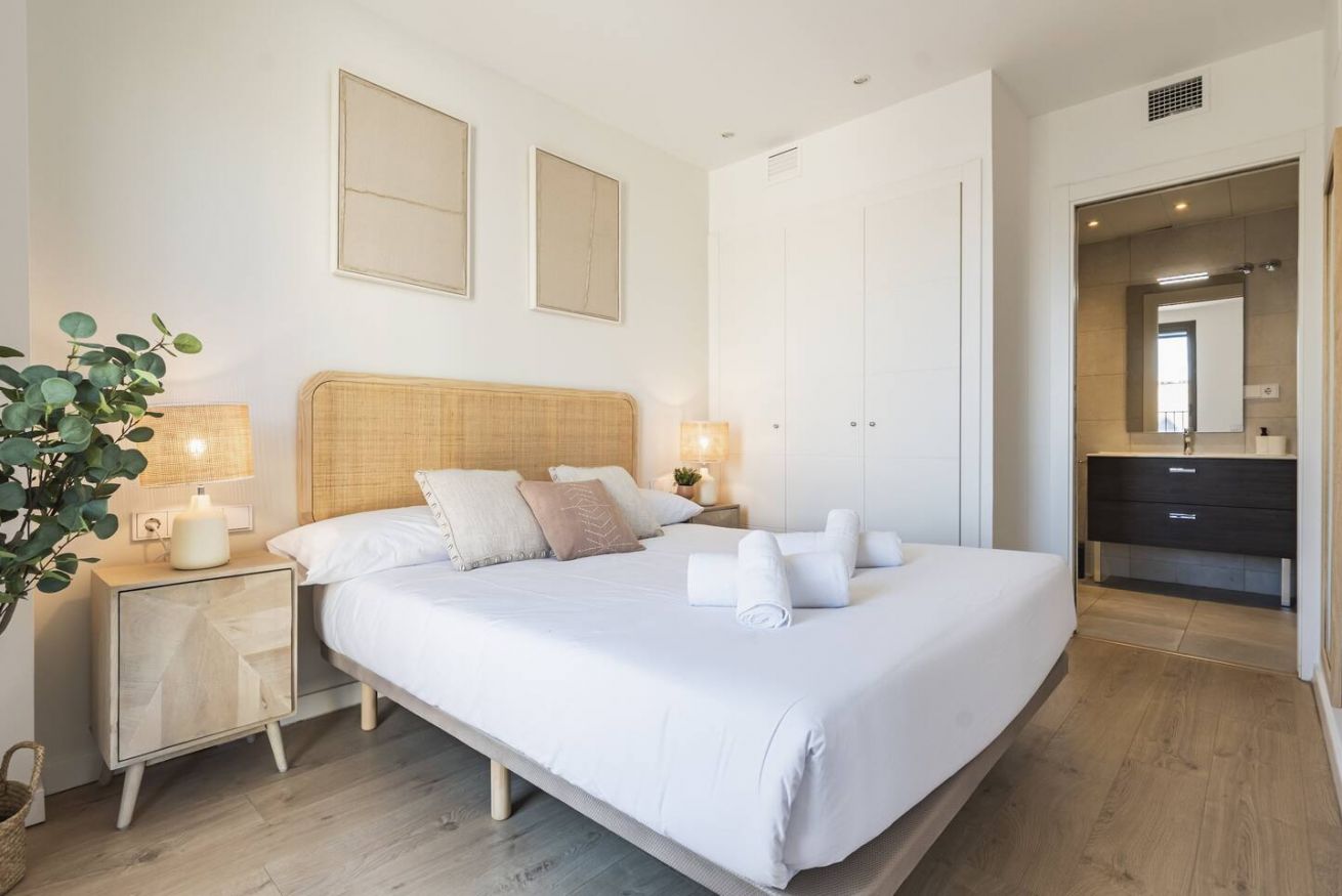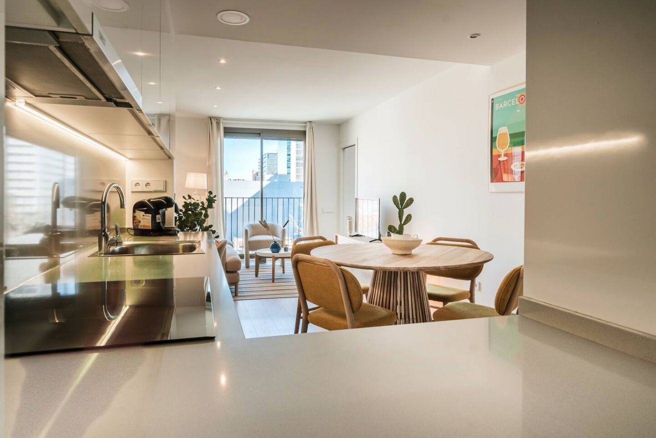Este apartamento de 100 m² con tres habitaciones tiene una cama doble y dos camas individuales, dos baños, sala, cocina semiabierta totalmente equipada. Cuenta con una azotea comunal con piscina. Diseñado para nómadas corporativos o profesionales que necesitan espacios totalmente equipados y comodidades modernas. Máx 4 huéspedes.