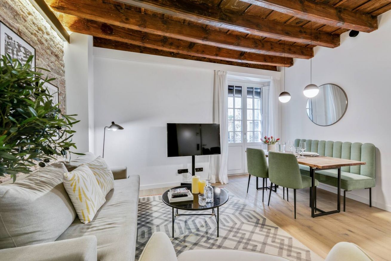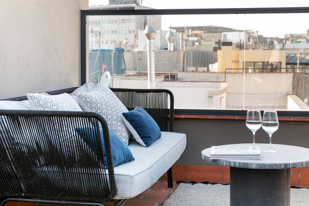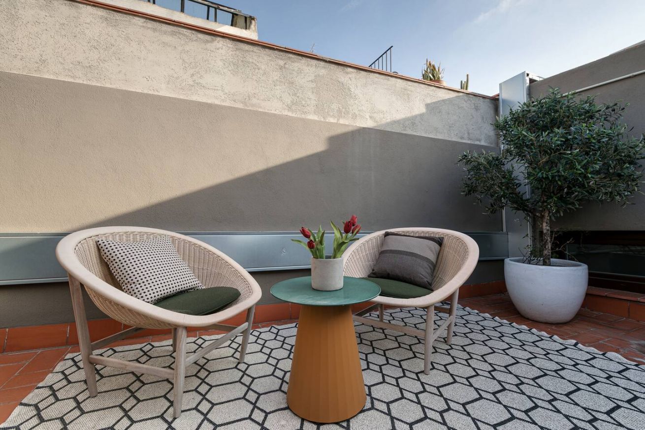 Este apartamento de 60 m² tiene un dormitorio espacioso con cama doble, dos baños, salón y cocina semiabierta completamente equipada. Relájate y desconéctate en la zona chill out de nuestra azotea. Ten en cuenta que la decoración puede variar entre apartamentos de la misma categoría. Máx. 2 huéspedes.