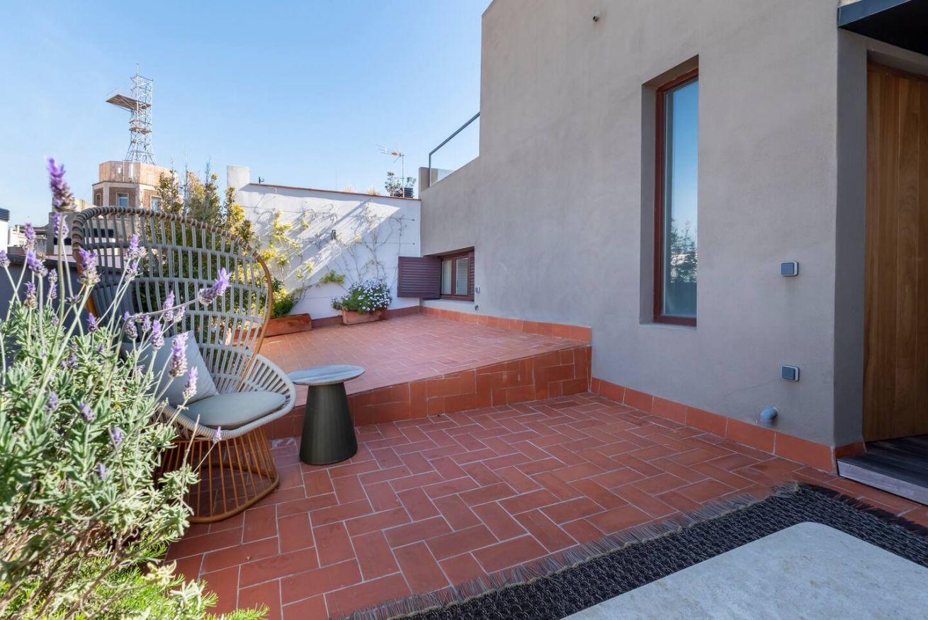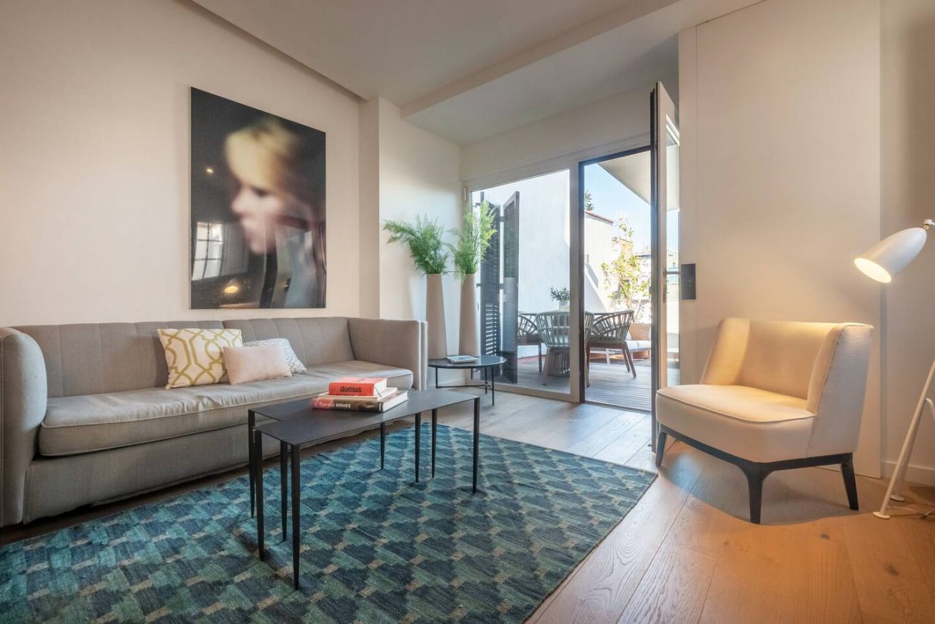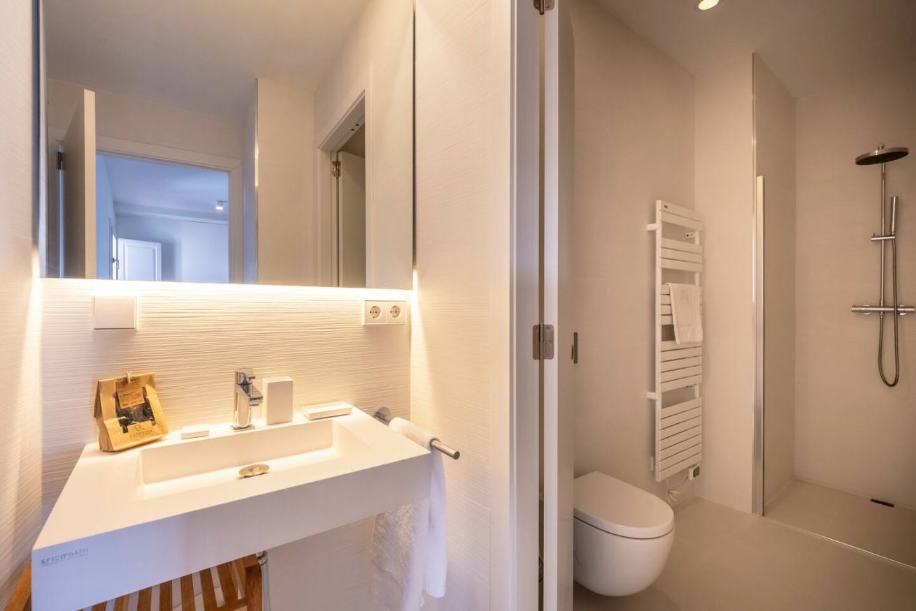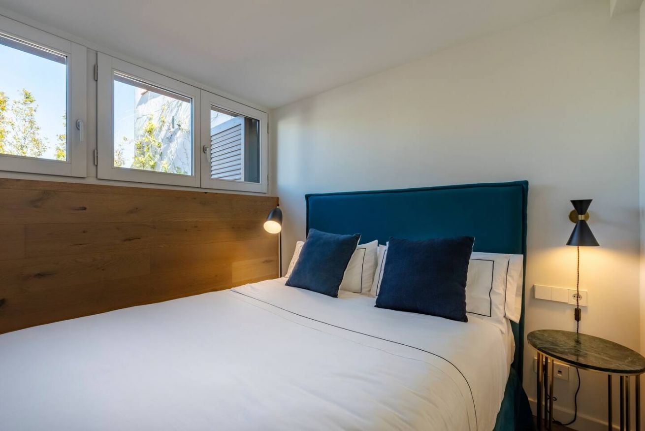 Este apartamento de 70 m² tiene un dormitorio espacioso con cama doble, dos baños, salón y cocina semiabierta completamente equipada. Relájate y desconéctate en la zona chill out de nuestra azotea. Máx. 2 huéspedes.