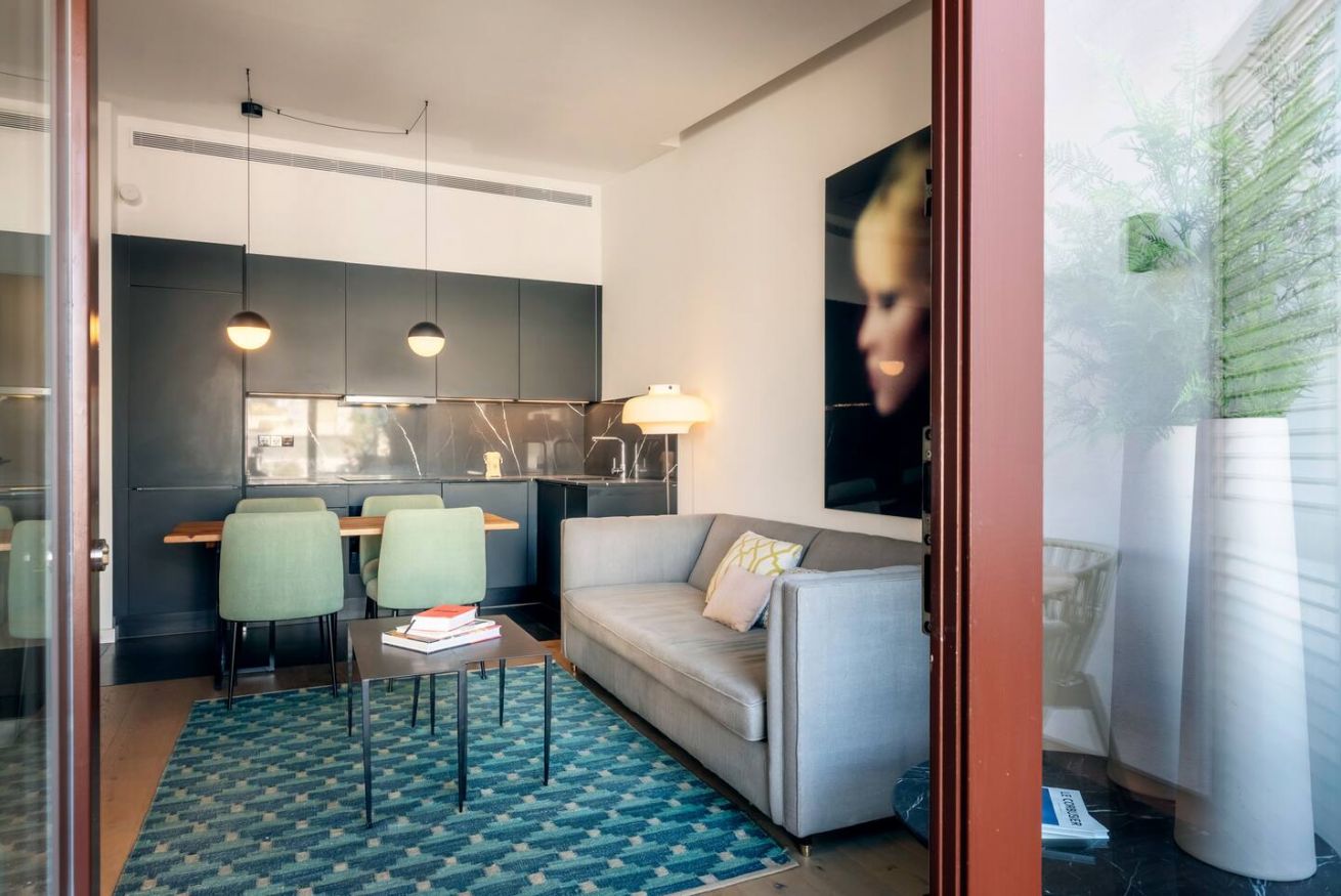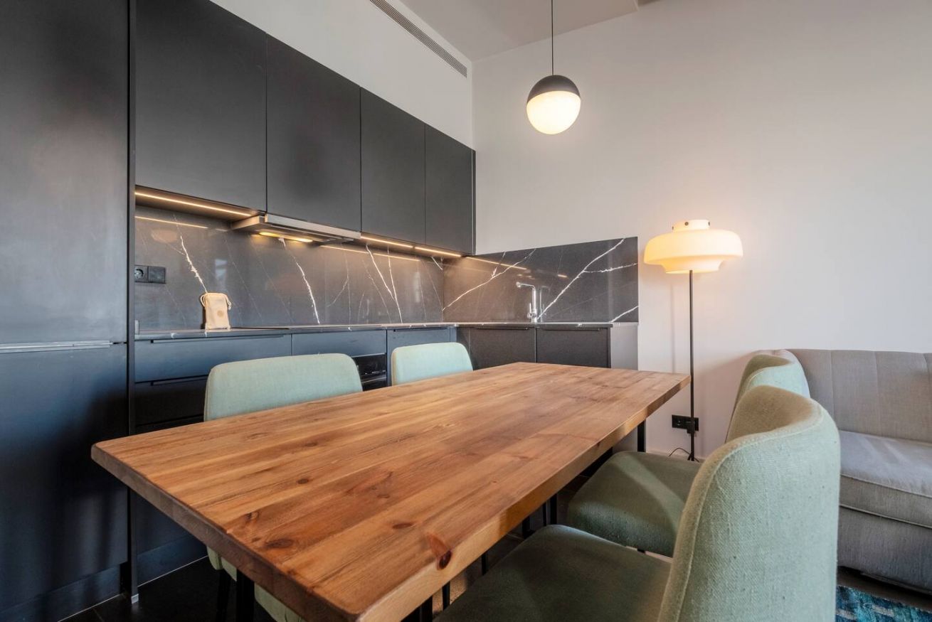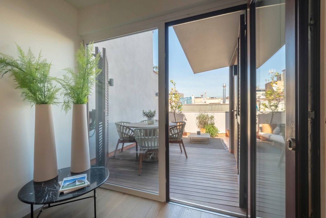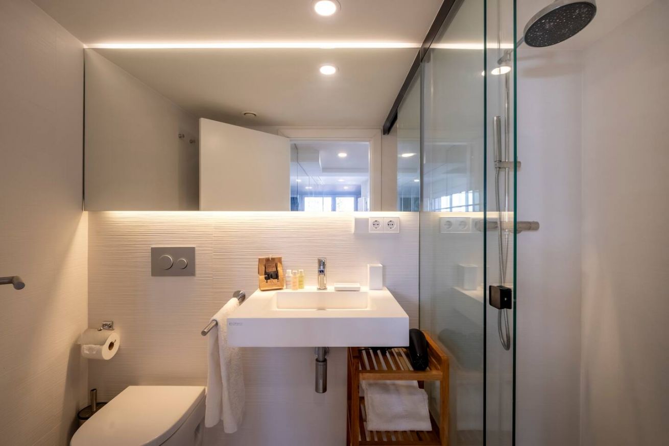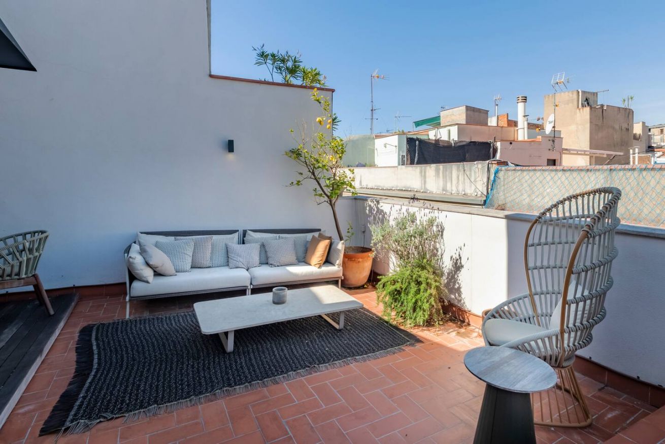 Este apartamento de 70 m² tiene un dormitorio espacioso con cama doble, dos baños, salón y cocina semiabierta completamente equipada. Relájate y desconéctate en la zona chill out de nuestra azotea. Máx. 2 huéspedes.
