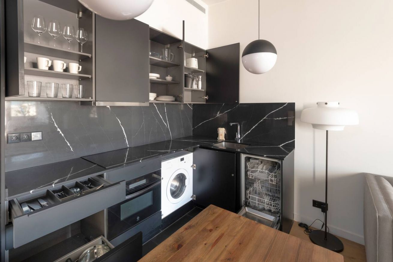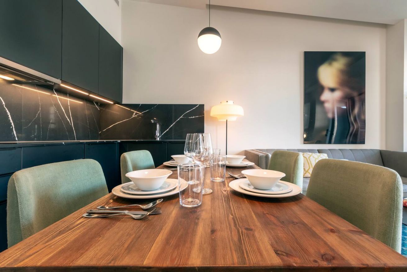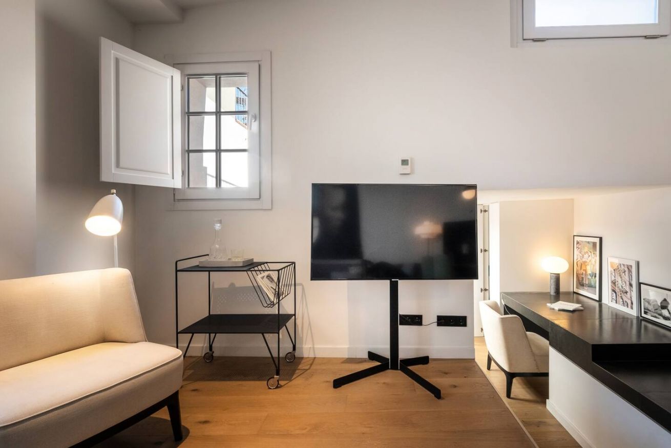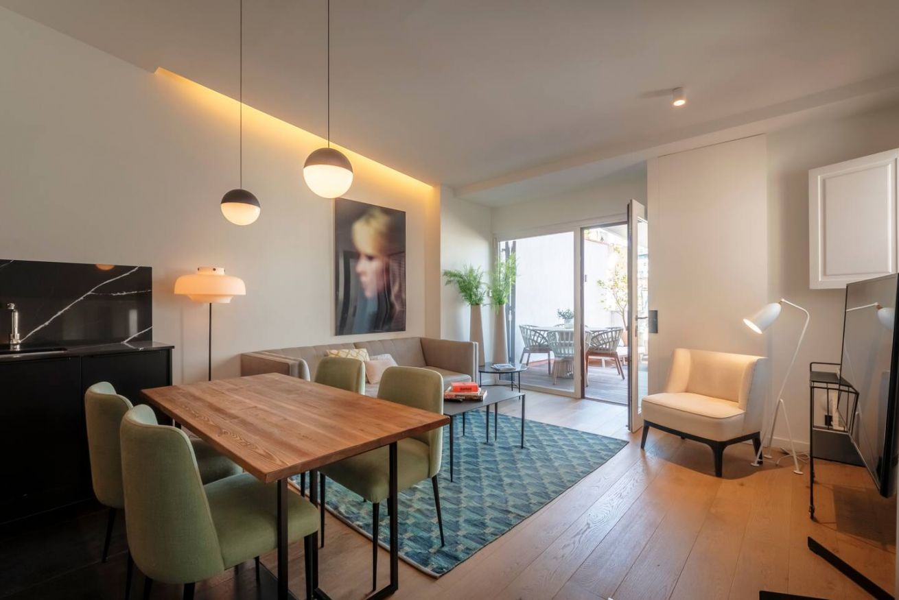 Este apartamento de 70 m² tiene un dormitorio espacioso con cama doble, dos baños, salón y cocina semiabierta completamente equipada. Relájate y desconéctate en la zona chill out de nuestra azotea. Máx. 2 huéspedes.