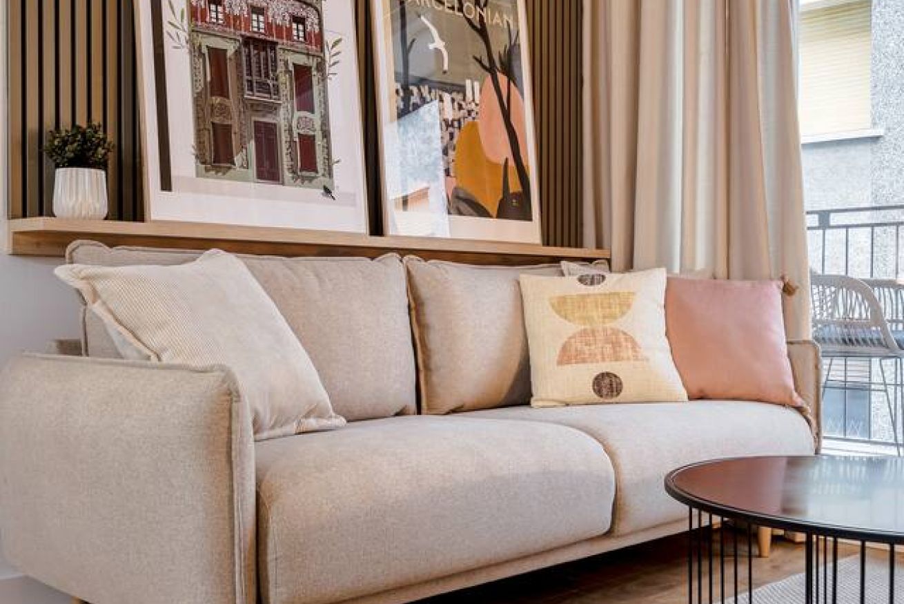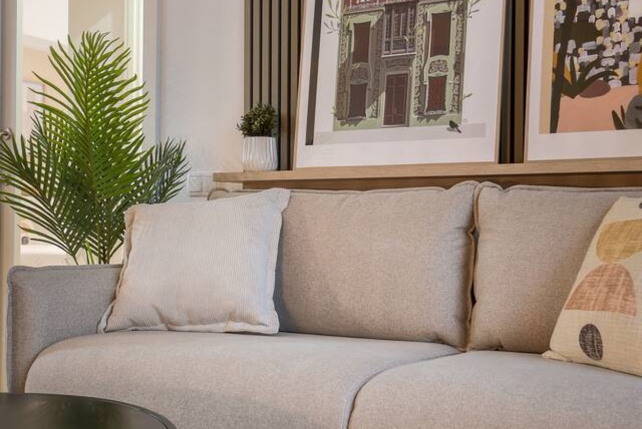 Este apartamento de 90 m² tiene tres dormitorios con dos camas dobles y una individual, dos baños, salón y cocina semiabierta completamente equipada. Es perfecto para nómadas corporativos o profesionales que necesitan espacios totalmente equipados y comodidades modernas. Máx. 5 huéspedes.