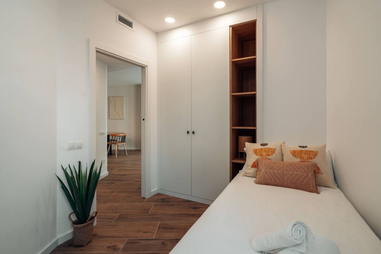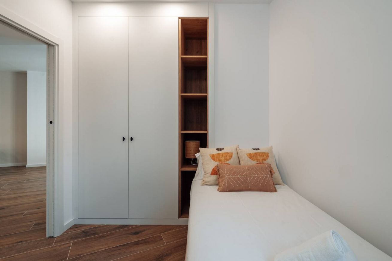 Este apartamento de 75 m² con dos dormitorios — uno doble y uno individual — y un baño es ideal para familias, parejas o profesionales. Totalmente equipado y amueblado. Máximo 3 huéspedes.