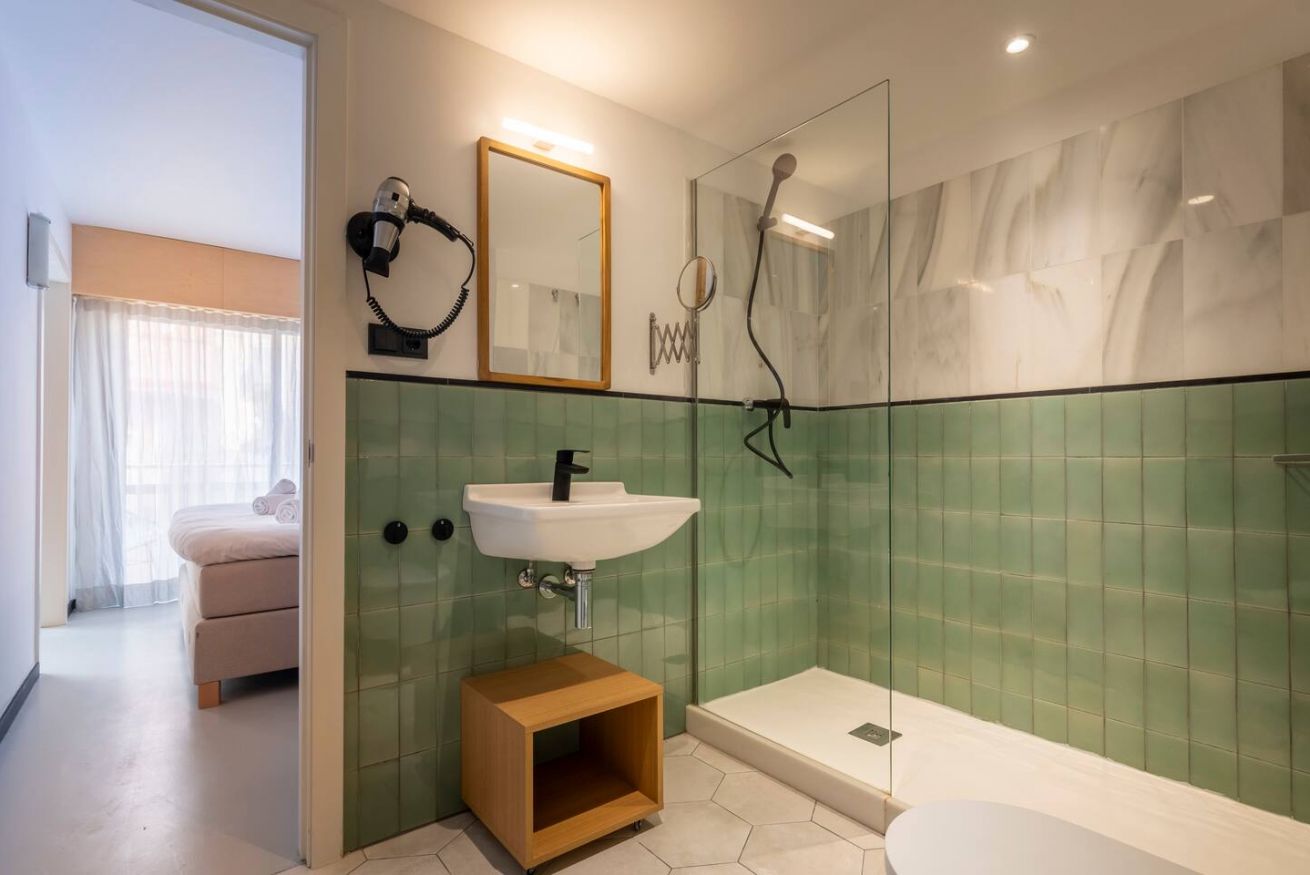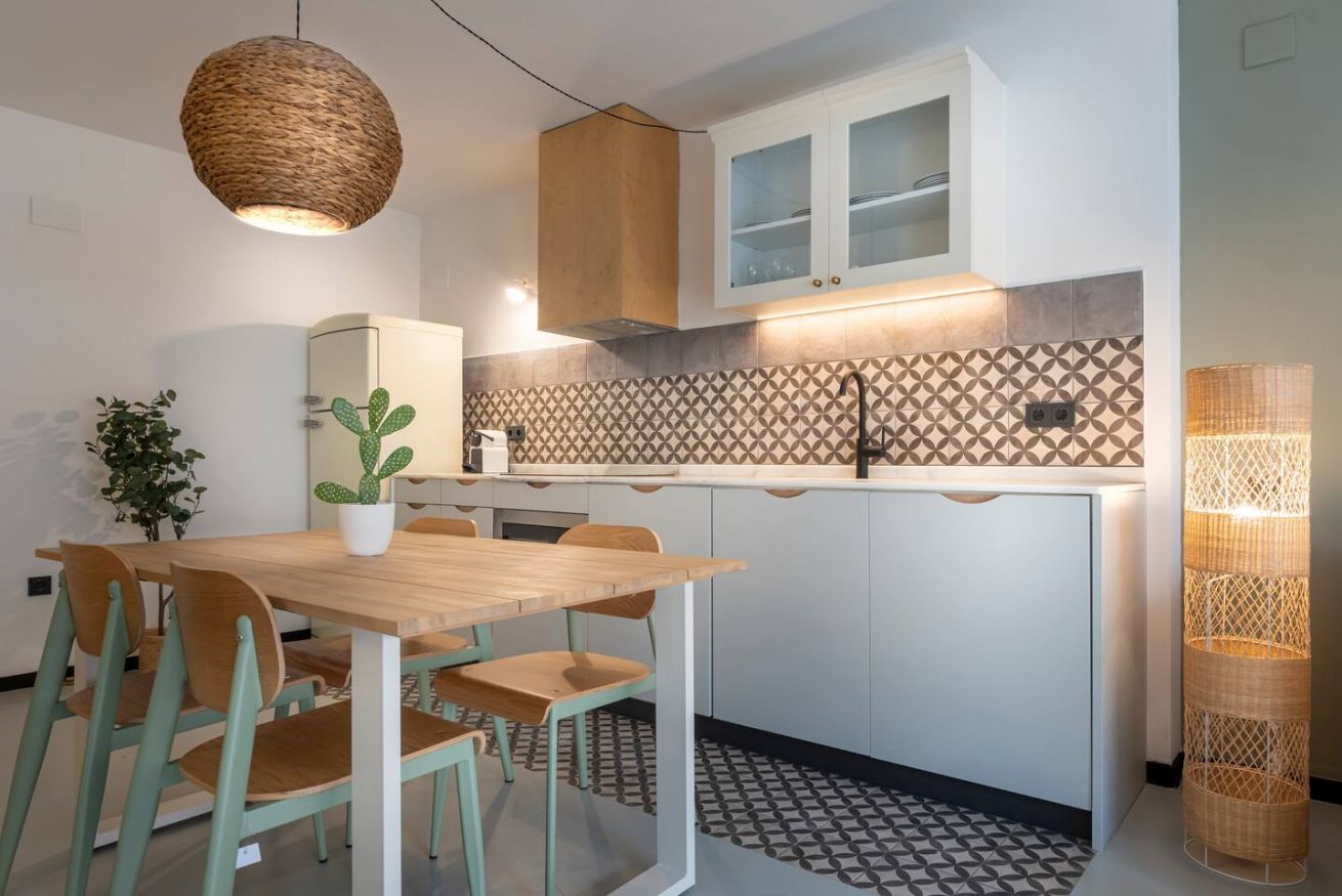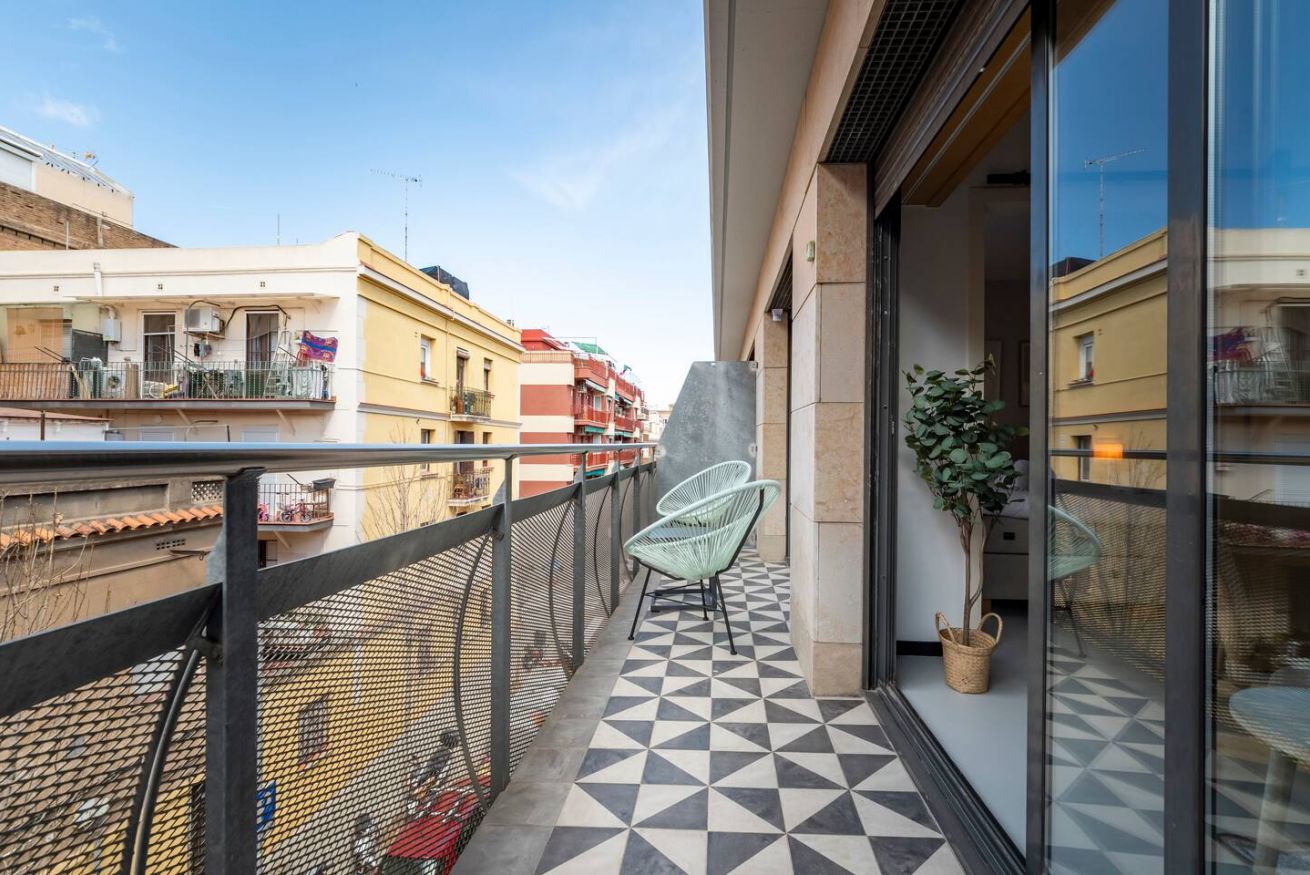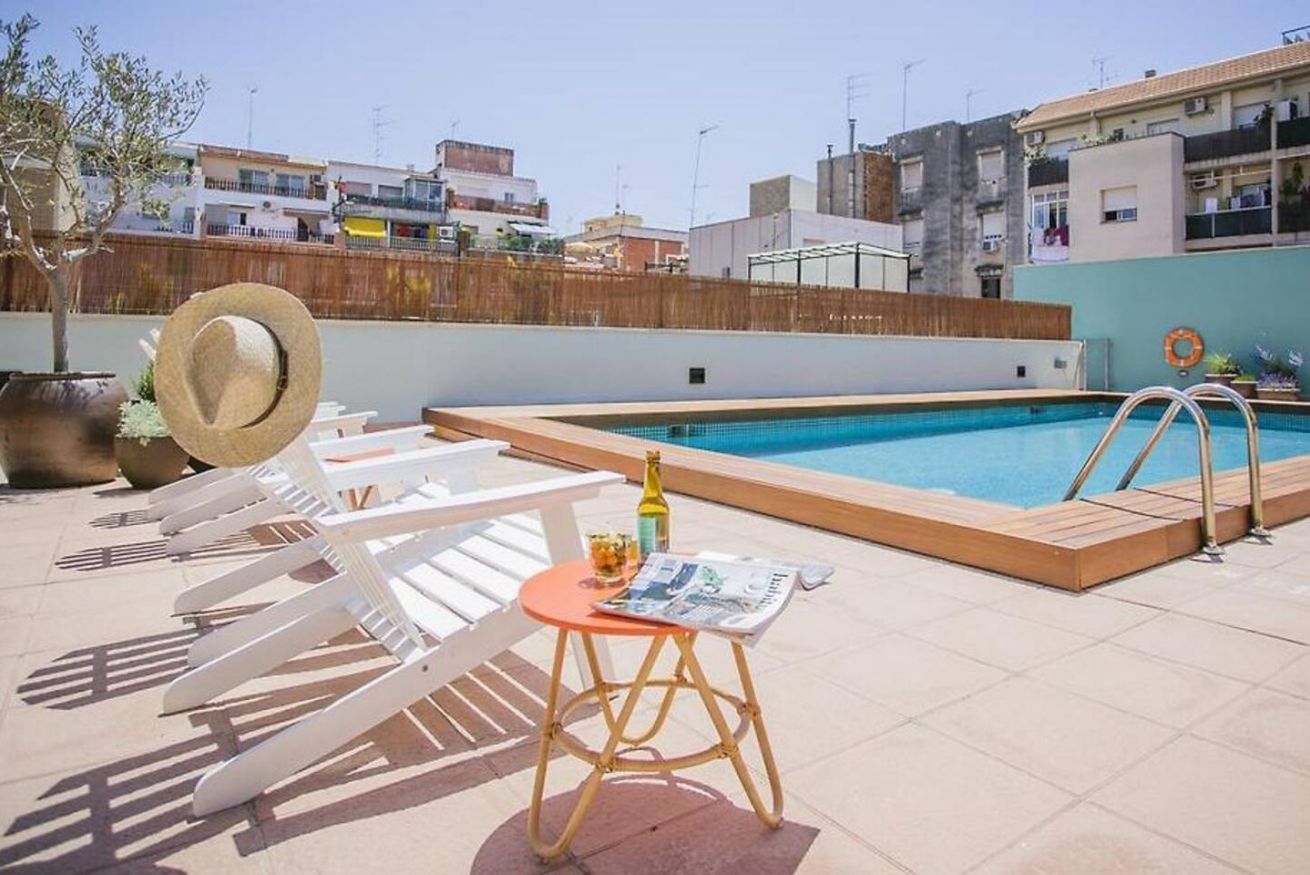 Este apartamento de 50 m² con un dormitorio tiene una cama doble, un baño, salón y cocina semiabierta completamente equipada. Combina un balcón privado con el disfrute comunal de un patio con piscina y zona chill out, ideal para nómadas corporativos o profesionales que necesitan espacios totalmente equipados y comodidades modernas. Máx. 2 huéspedes.